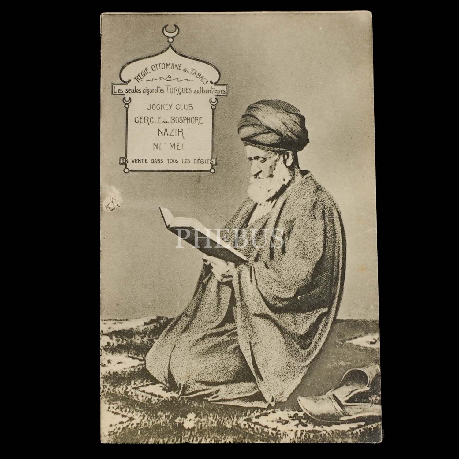 Kitap okuyan hoca görselli ve Regie (Reji) İdaresi ve sigaraları reklamlı kartpostal, 14x9 cm...