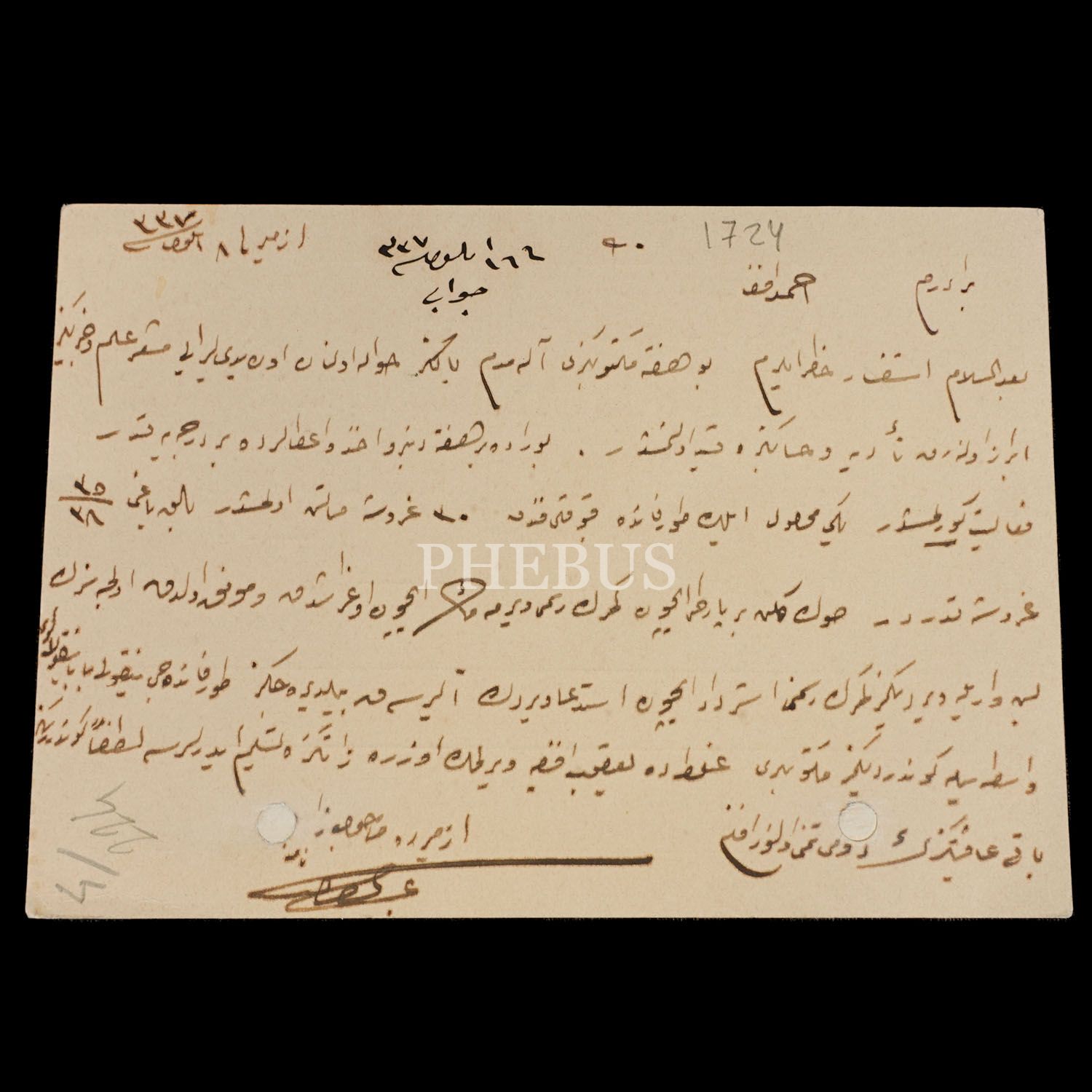 İzmir´de bulunan bir tüccarın, İstanbul´da Kunduracı Hanı´nda bulunan Ahmet Efendi´ye gönderdiği balık yağı ticareti ile alakalı mektubu, 14x9 cm...
