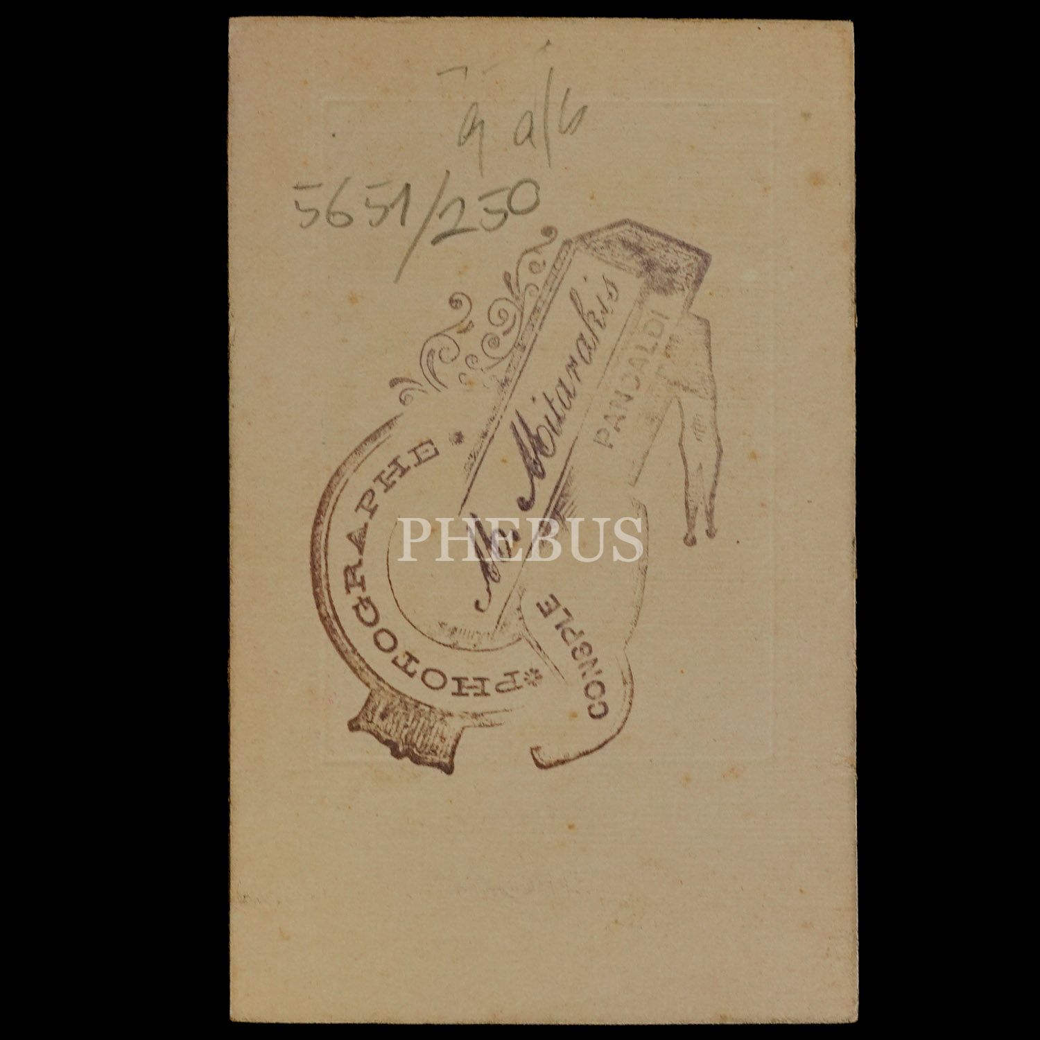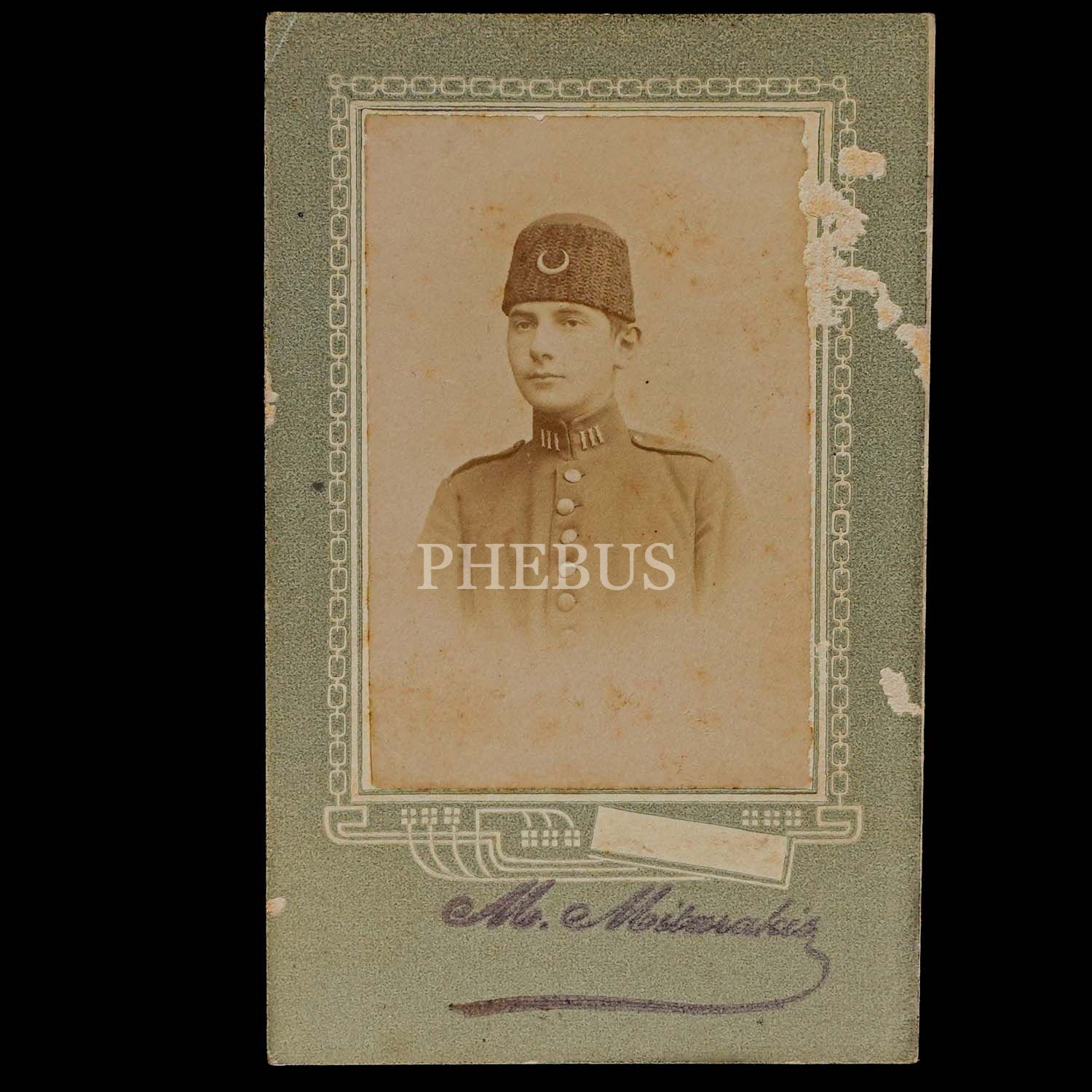 Kalpağı hilalli bir askeri öğrencinin CDV (kartvizit) boy portre fotoğrafı, M. Mitarakis, Pancaldi (Pangaltı), Constantinople, 7x11 cm...