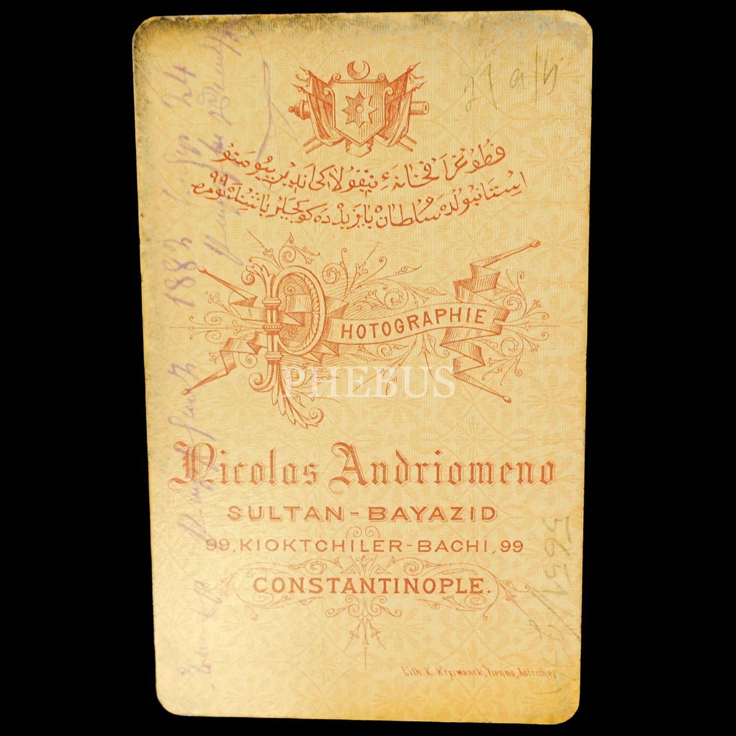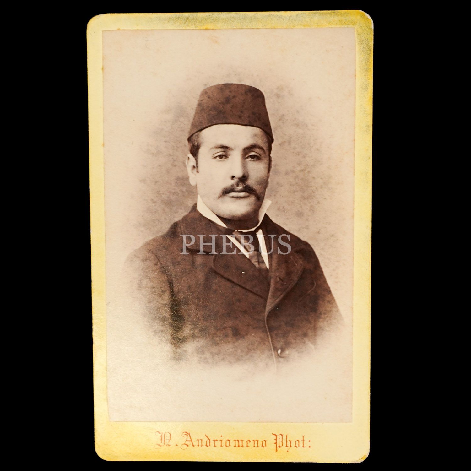 Fesli bir beyefendinin CDV (kartvizit) boy portre fotoğrafı, 1883, Nicolas Andriomenos, Constantinople, 6,5x10 cm...
