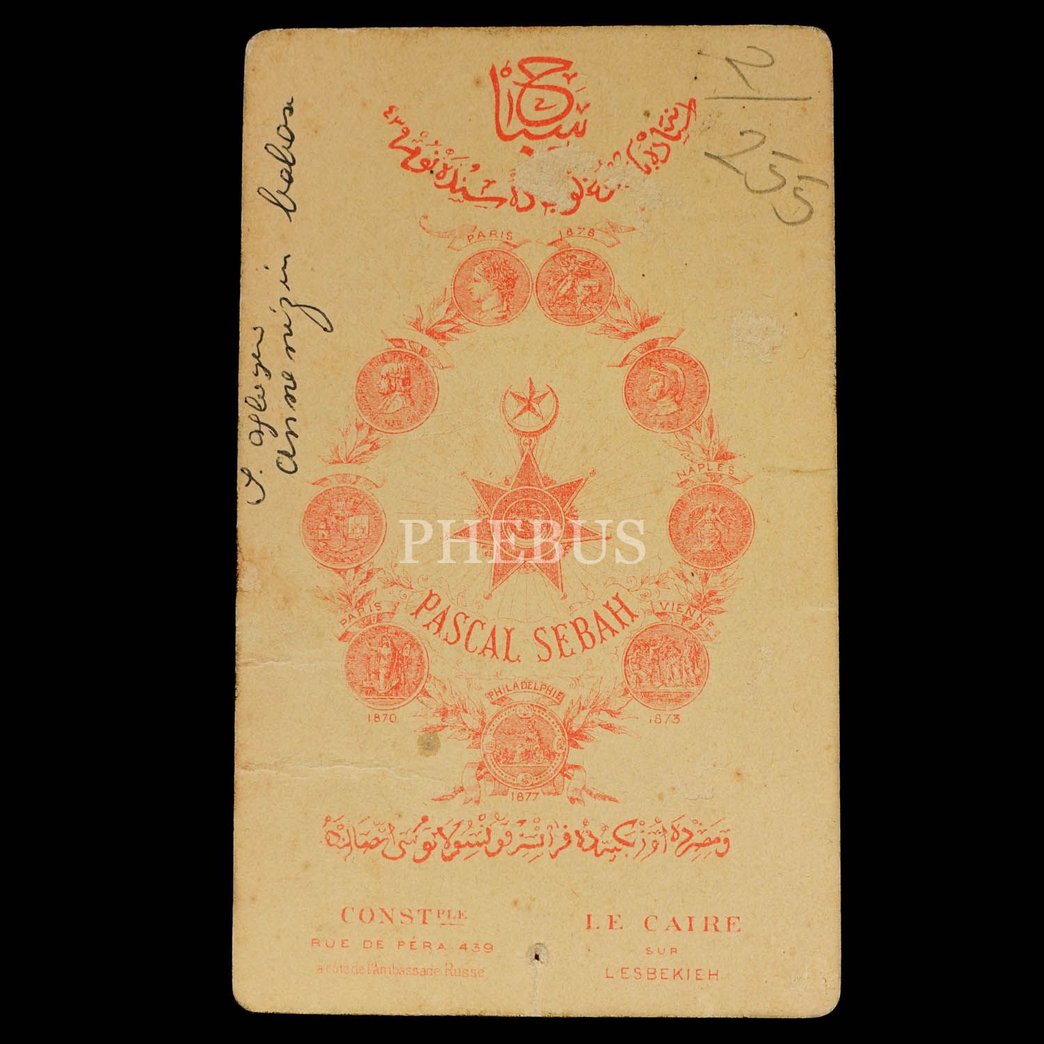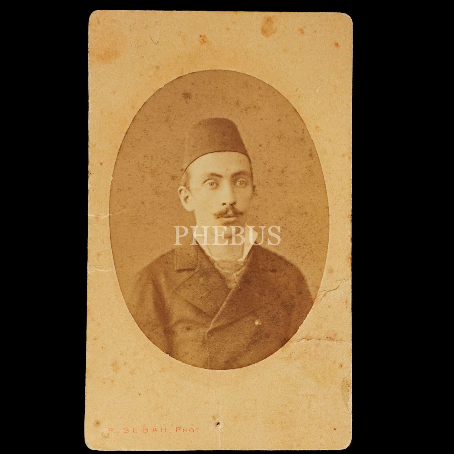 Fesli bir beyefendinin CDV (kartvizit) boy portre fotoğrafı, Pascal Sebah, Constantinople, 6,5x10 cm...