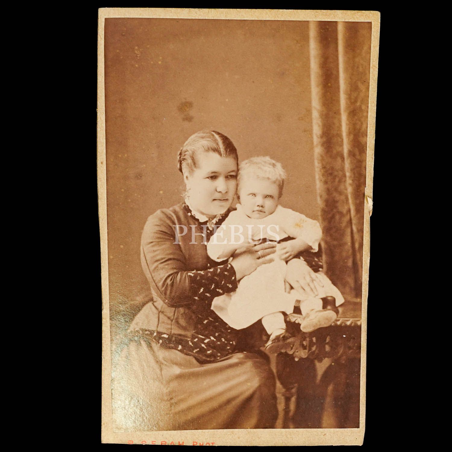 Levanten bir anne ile çocuğunun CDV (kartvizit) boy hatıra fotoğrafı, Pascal Sebah, Constantinople, 6,5x10 cm...
