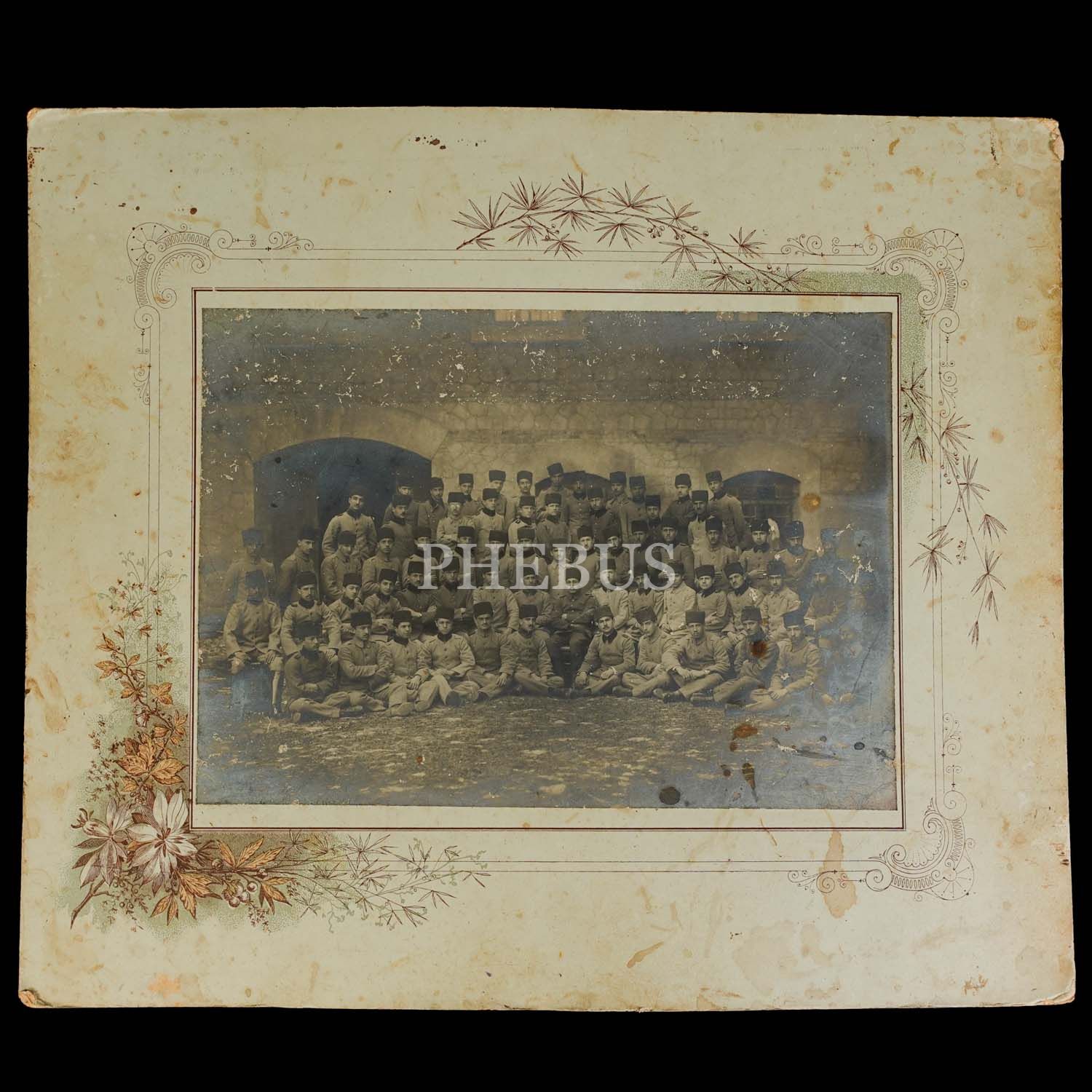 Cihan Harbi döneminden bir askeri birliğin toplu hatıra fotoğrafı, fotoğraf 24x16 cm, paspartu 35x30 cm...