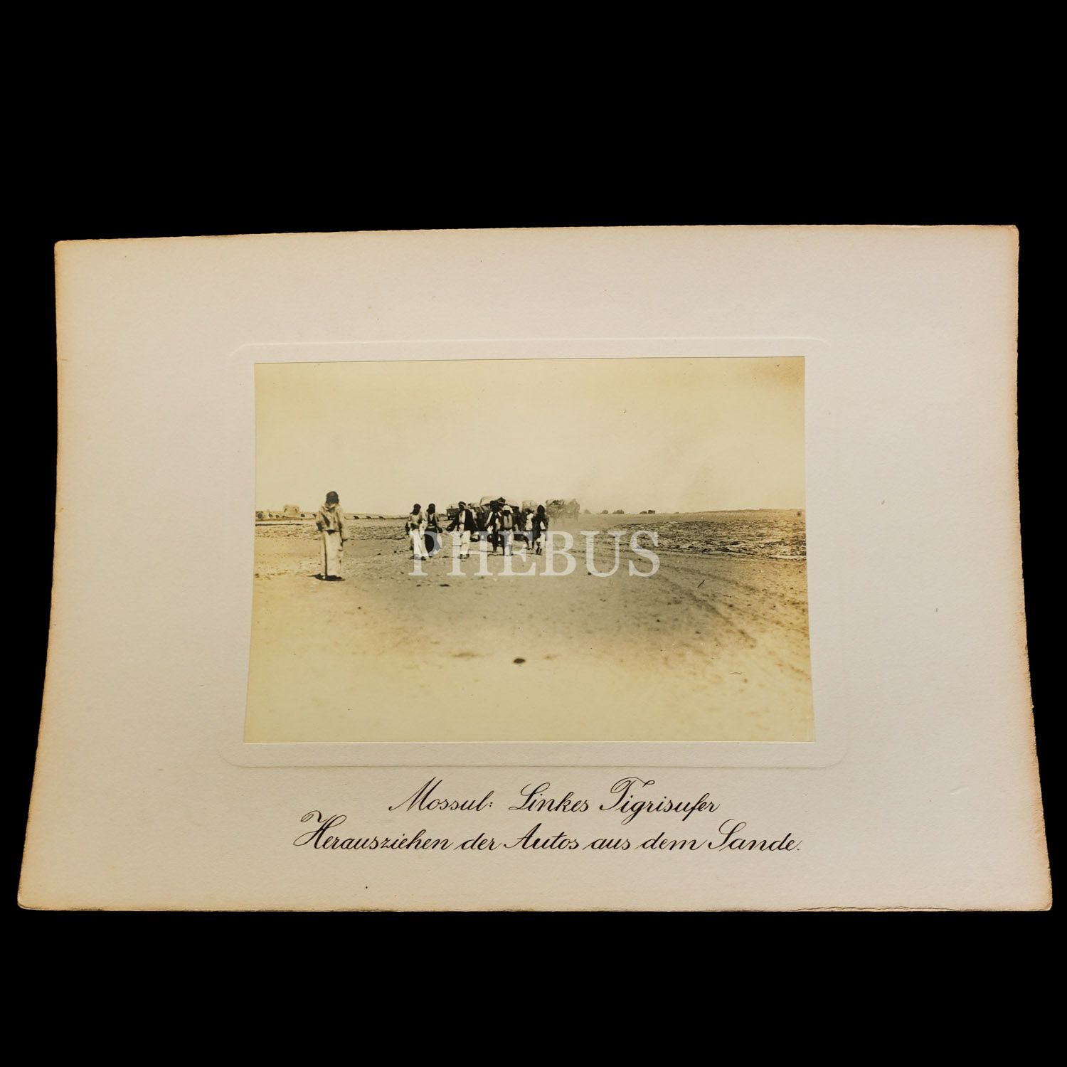 Musul (Dicle´nin sol yakası) - Arabaların kumdan çekilmesi, "Mossul: Linkes Tigrisufer - Herausziehen der Autos aus dem Sande", fotoğraf 13x8 cm, paspartu 24x16 cm...
