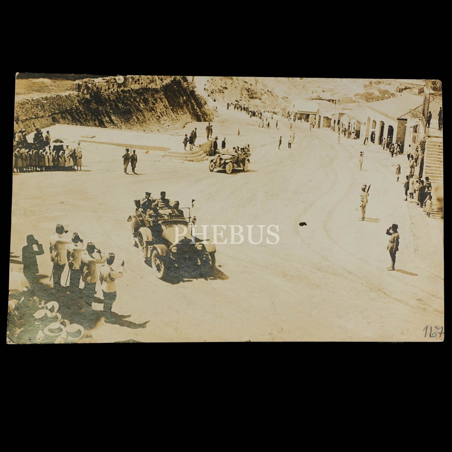 Cemal Paşa ile yabancı bir mevkidaşı arabayla hareket halinde, 14x9 cm...