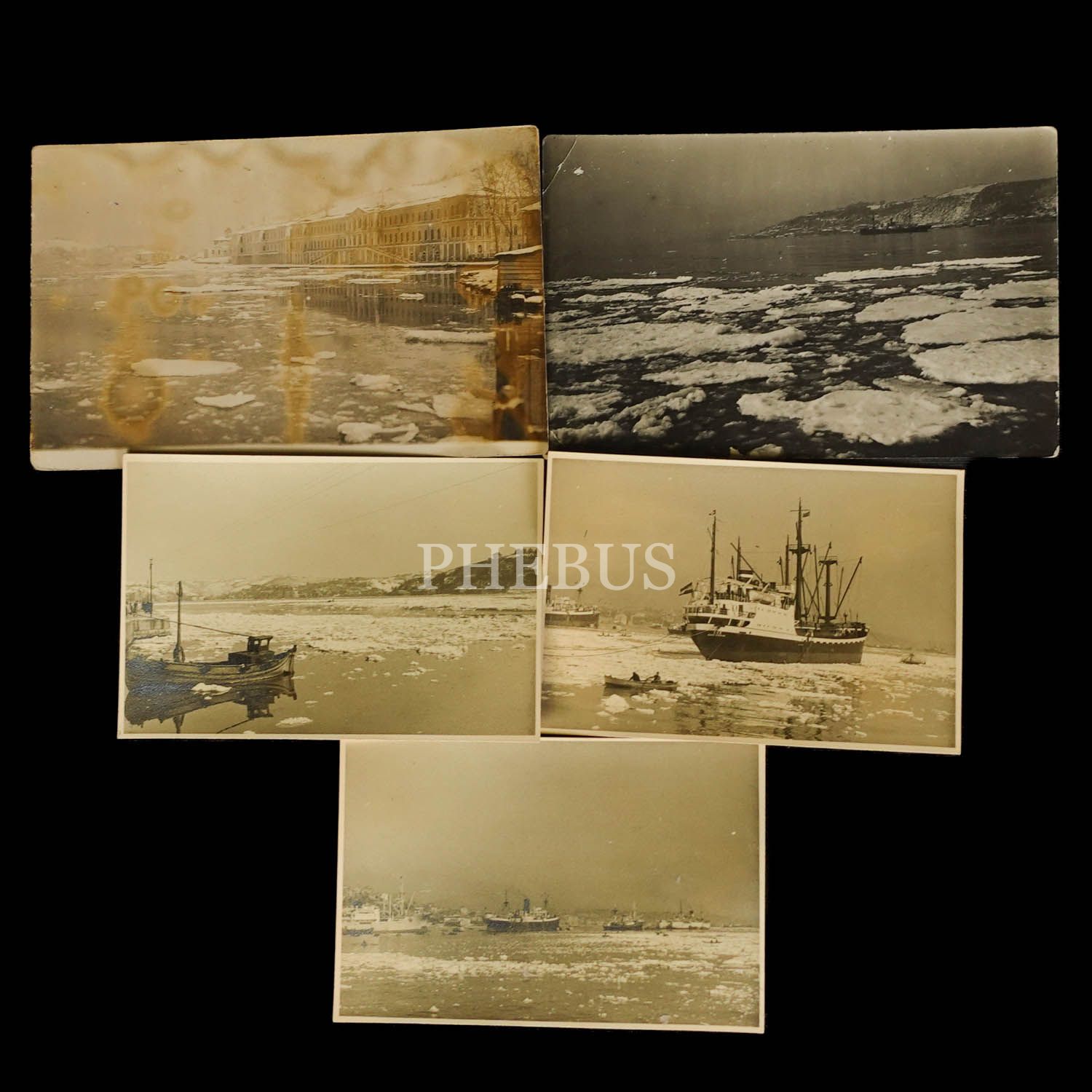 İstanbul Boğazı´nın, Tuna Nehri´nden kopup gelen buz kütleleriyle kaplandığı meşhur 1929 Kışı´nda çekilmiş 5 adet fotoğraf, üçü 12x8 cm, ikisi 14x9 cm...