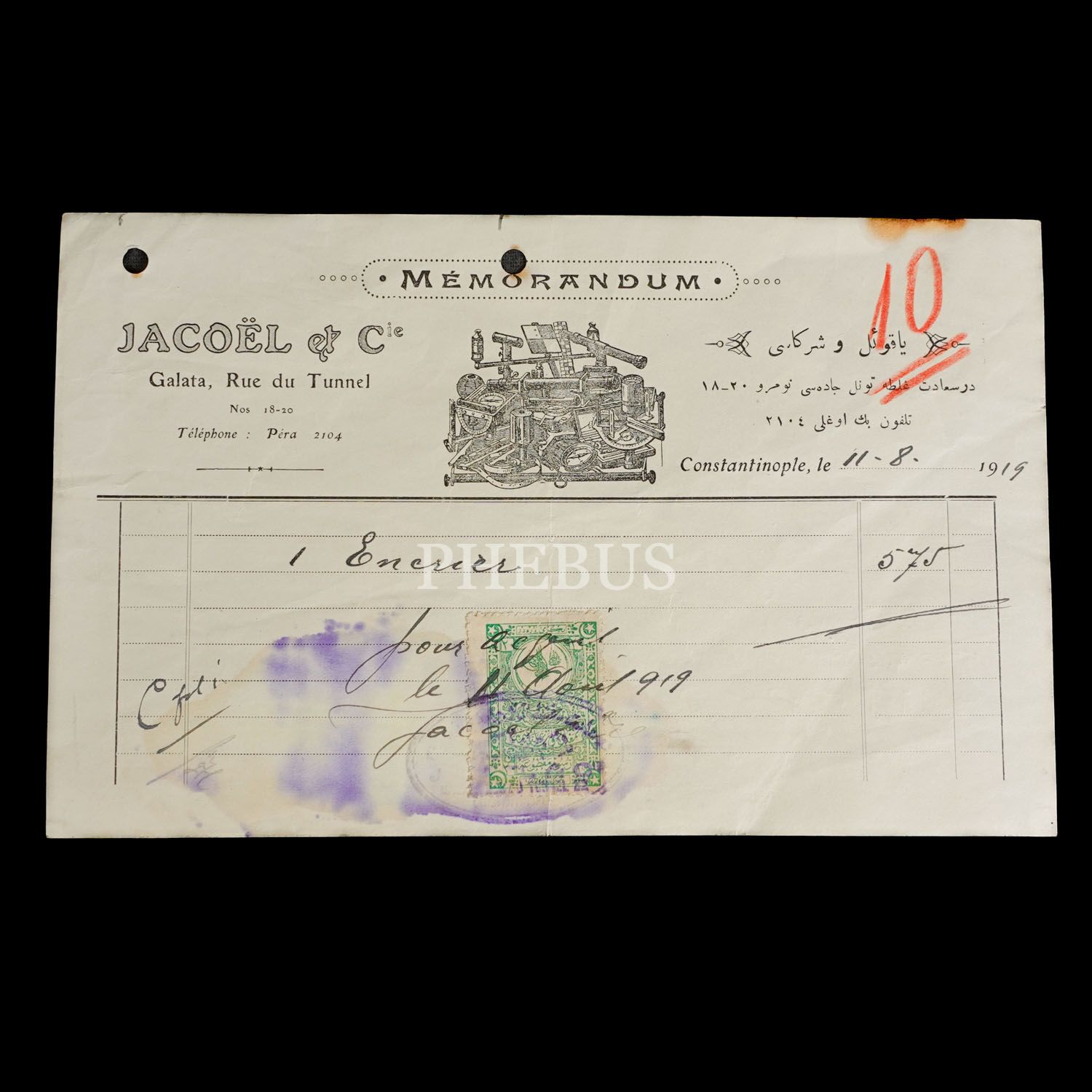 Jacoel ve Şürekası antetli iki dilde fatura, 21x13 cm...
