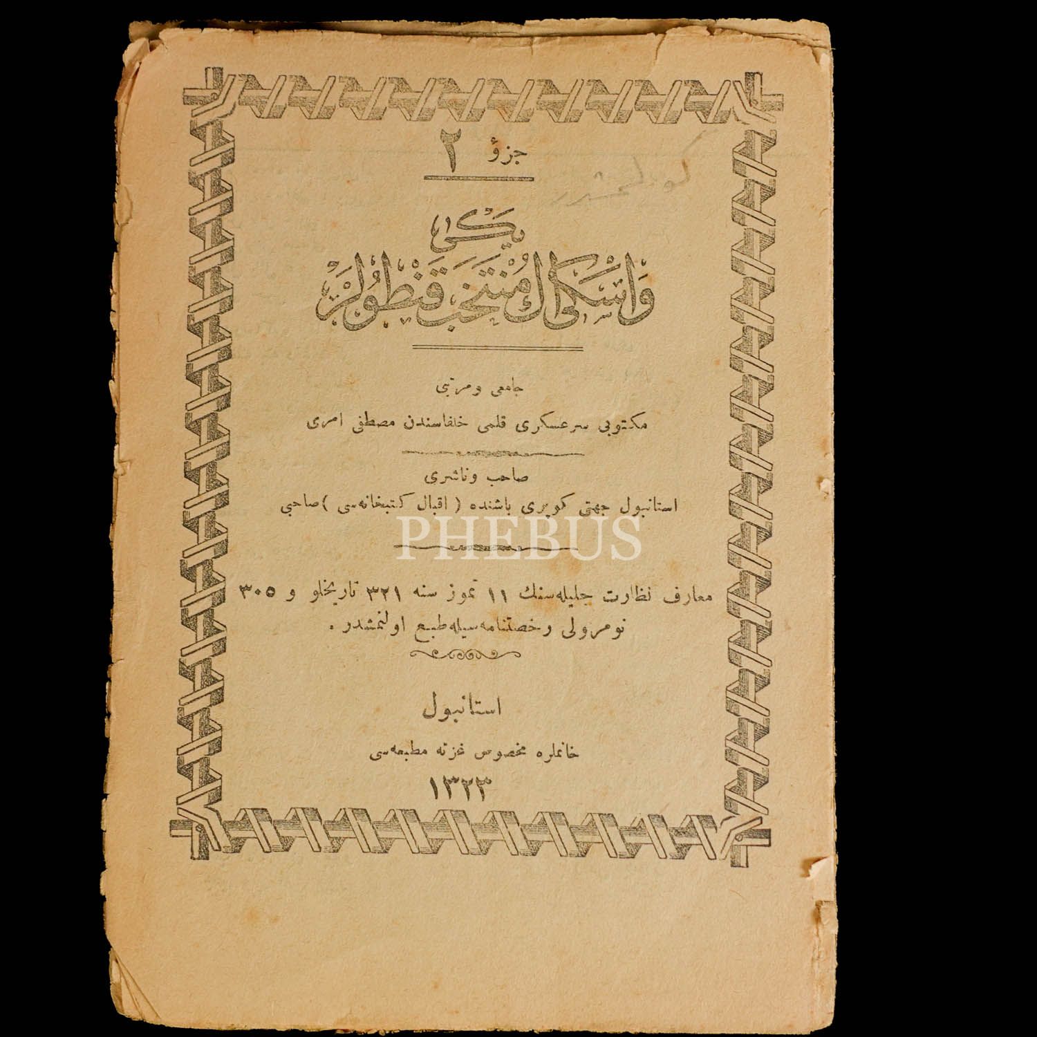 Yeni ve Eski En Müntahab Kantolar (2. Cüz), (Çeviren: Mustafa Emrî). İstanbul 1323(hicri) 1905(miladi) Hanımlara Mahsûs Gazete Matbaası, 48 sayfa, 14x19 cm...