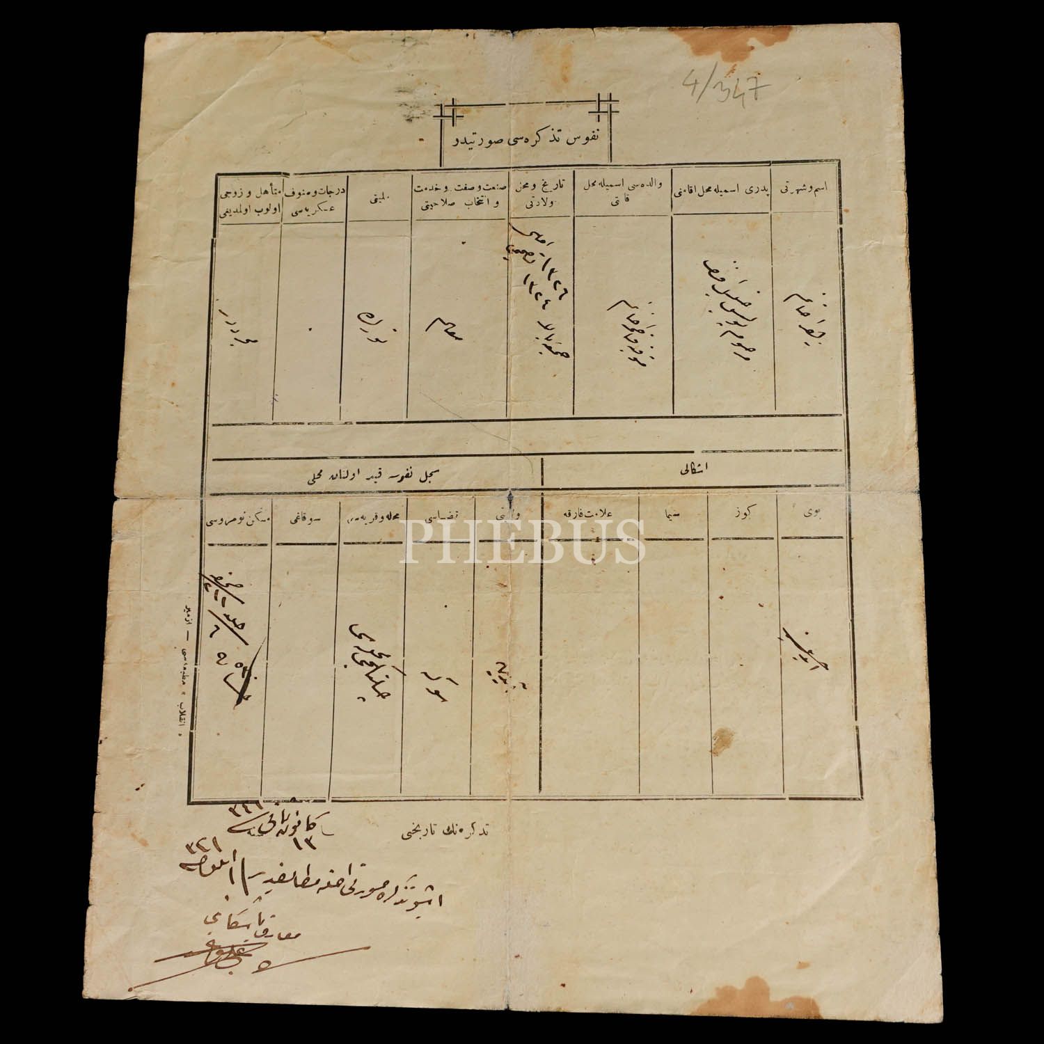 "Türkiye Büyük Millet Meclisi Hükümeti" yazısının üzeri çizilerek el ile "Türkiye Cumhuriyeti" yazılmış, Zehra Hanım adına Aydın Mekteb-i İptidaiyesi tarafından verilmiş diploma, 23x28 cm...