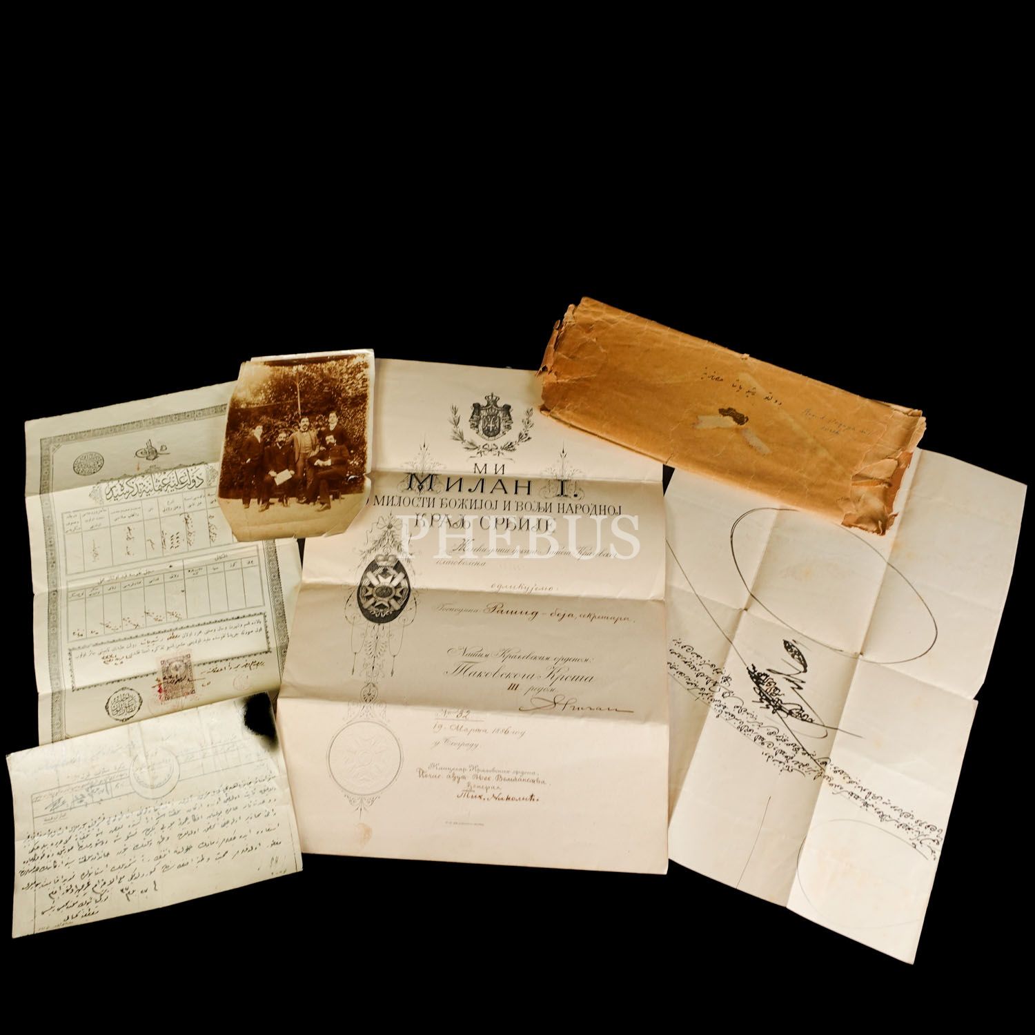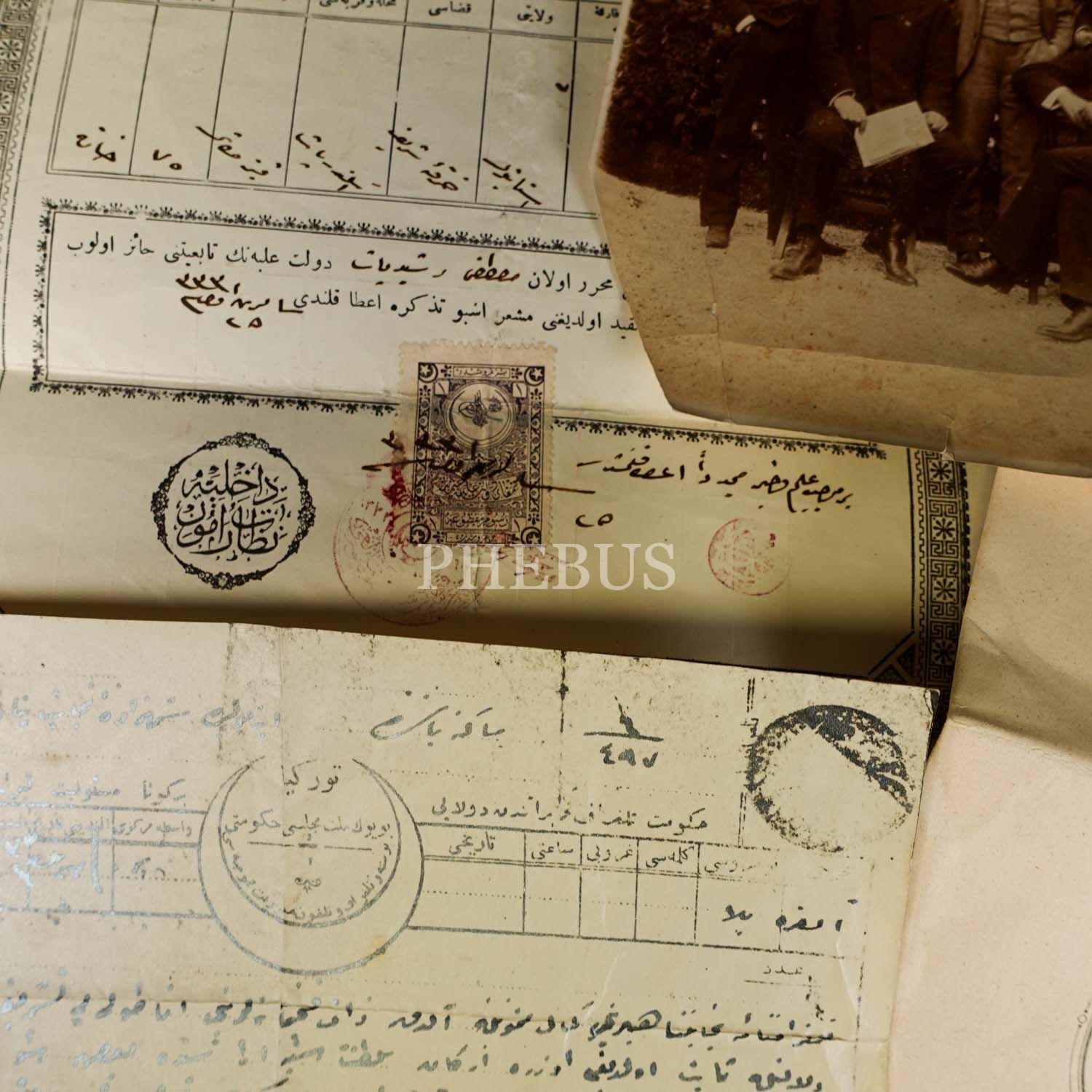 Evraklar arasında, Mustafa Reşit Paşa´nın aile efradı ile aldırdığı hatıra fotoğrafı, Mustafa Reşit Paşa´nın ve oğlunun nüfus tezkiresi (Osmanlı Devleti kimliği), Mustafa Reşid Paşa adına gönderilmiş biri Osmanlıca diğeri Fransızca yazılı mektup zarfları ve Bab-ı Ali Hariciye Nezareti antetli çok sayıda evrak...
