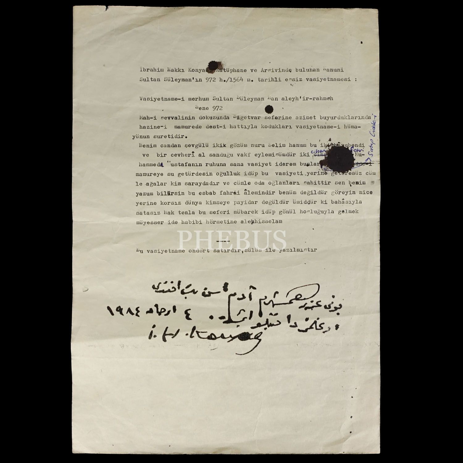Kanuni Sultan Süleyman´ın Konya Kütüphanesi´nde bulunan vasiyetnamesinin kopyası...