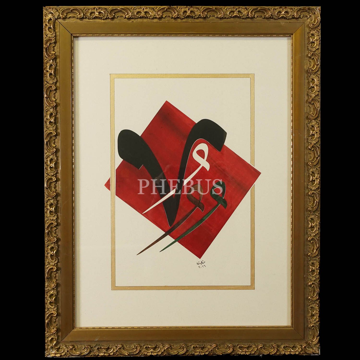 Hattat Sami Naddah, tirfil ve harekeler, modern üslupta hat tablosu, 2012, çerçeve ölçü 58x48 cm...