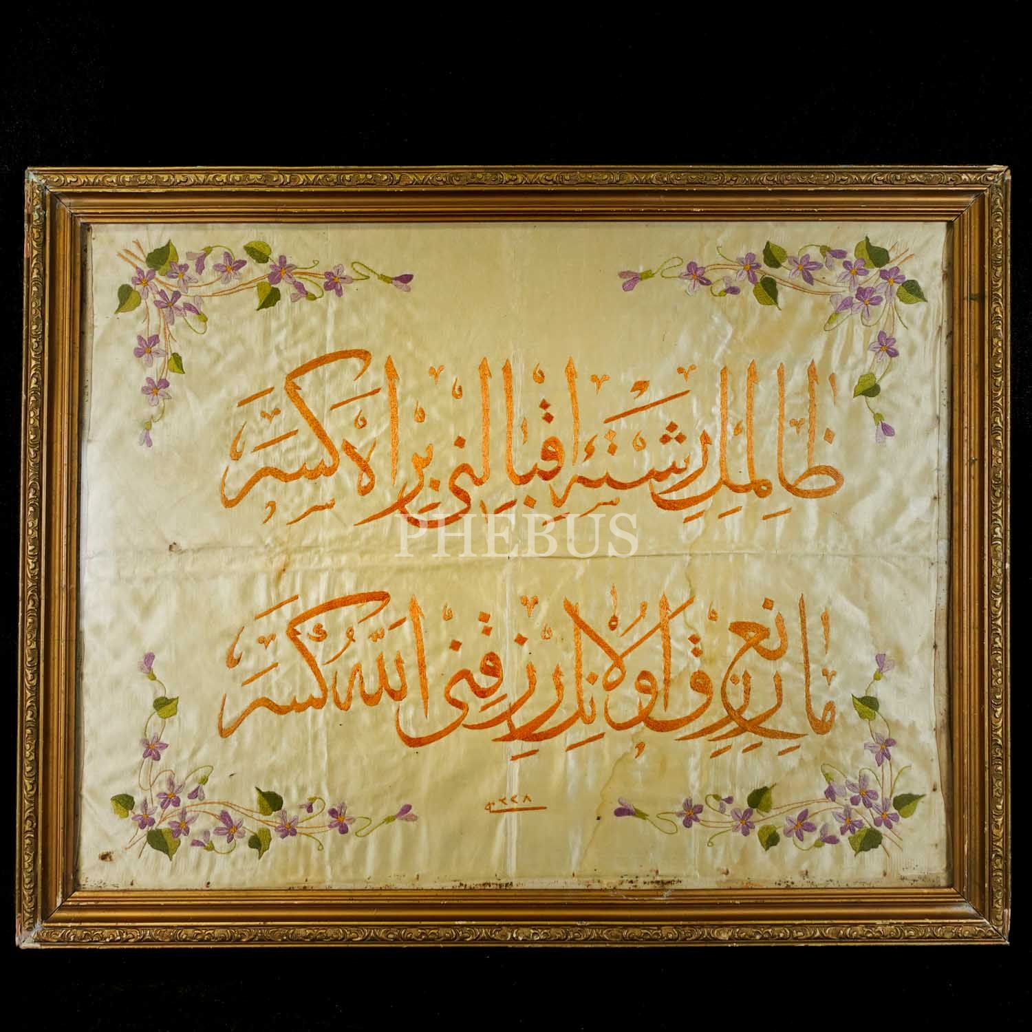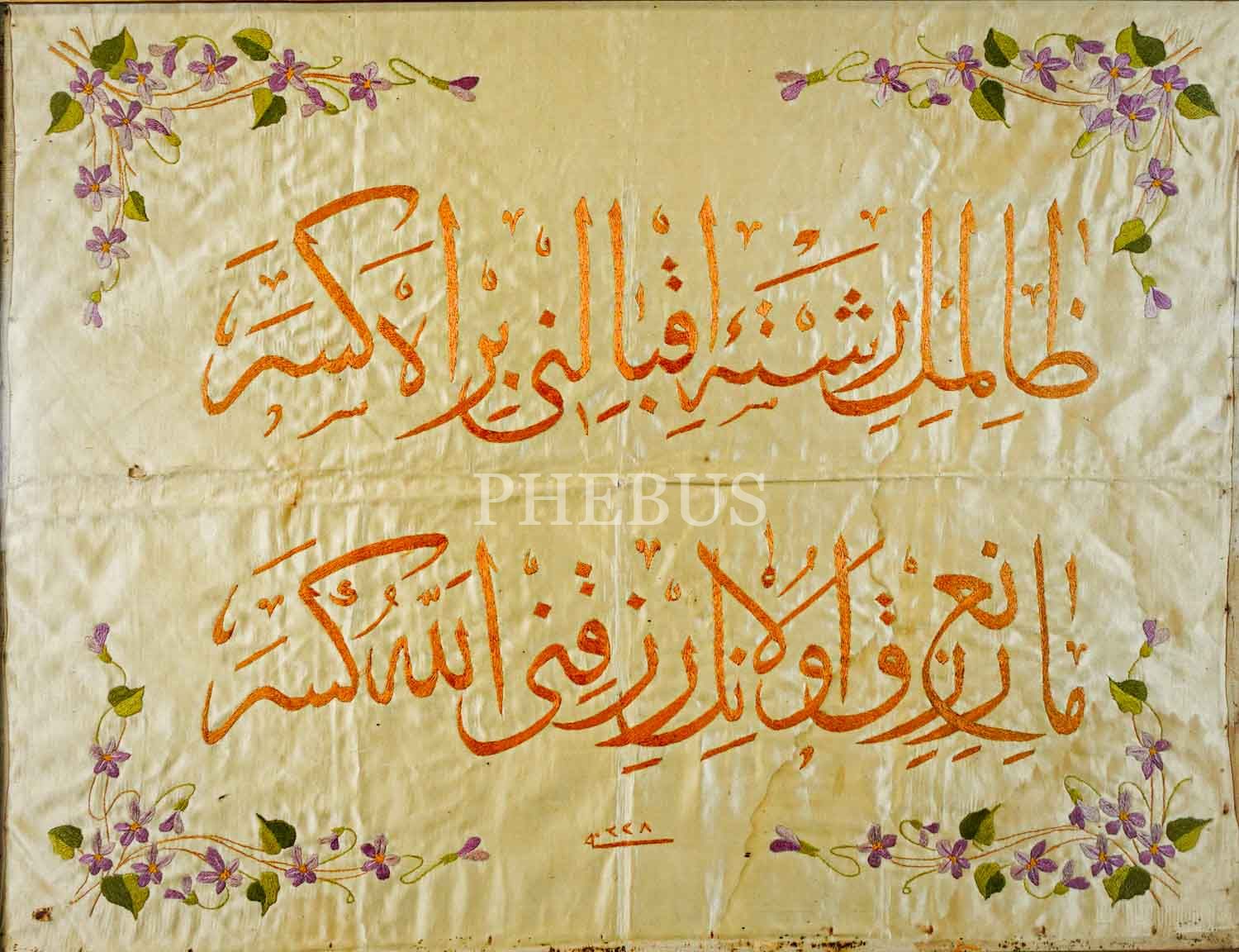İpek kumaş üzerine dokuma şiir, çerçeve ölçü: 70x56 cm...