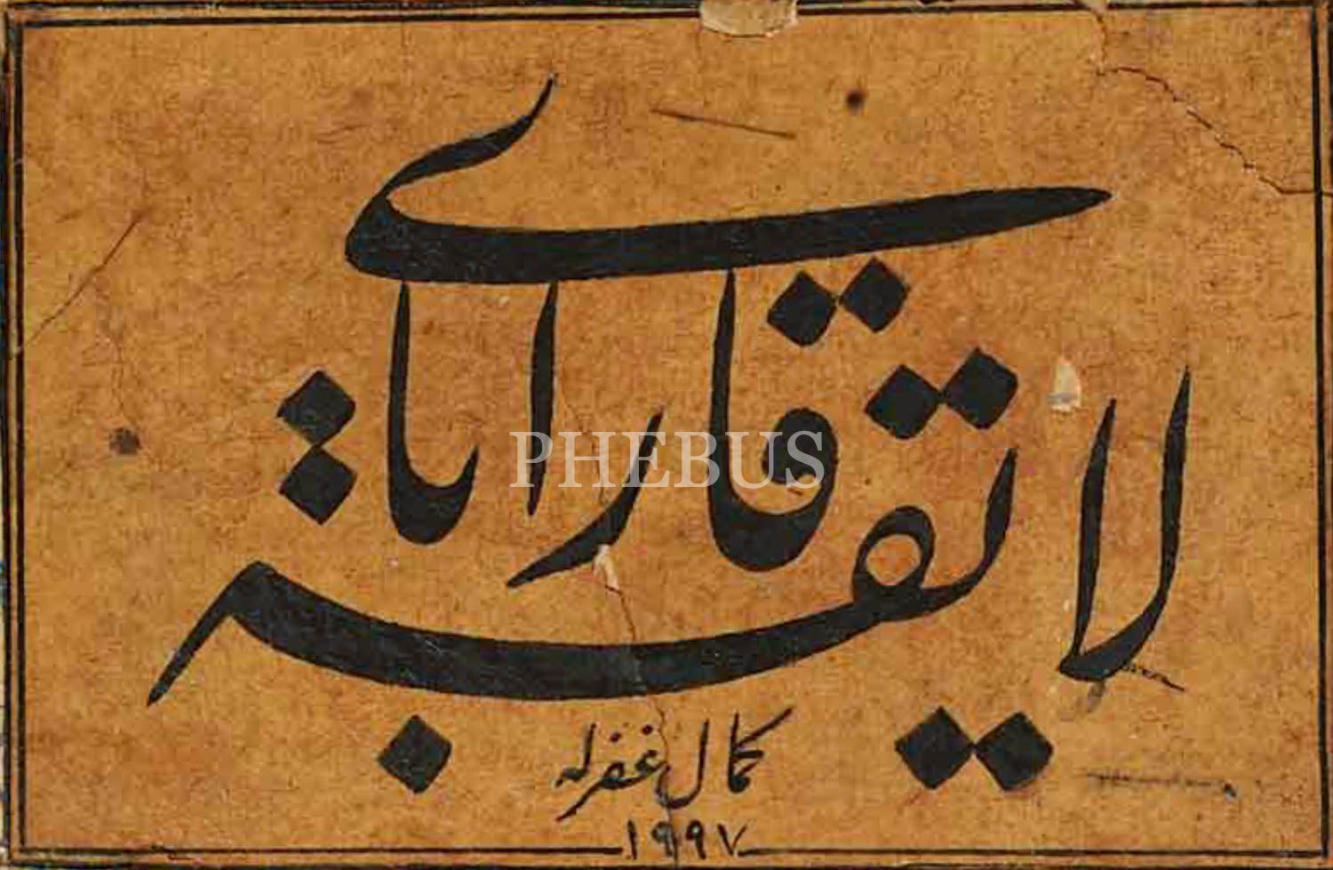 Talik yazı "Laika Karabay", Kemal Ketebeli, 1997 tarihli, ebru pervazlı, 17x21 cm...