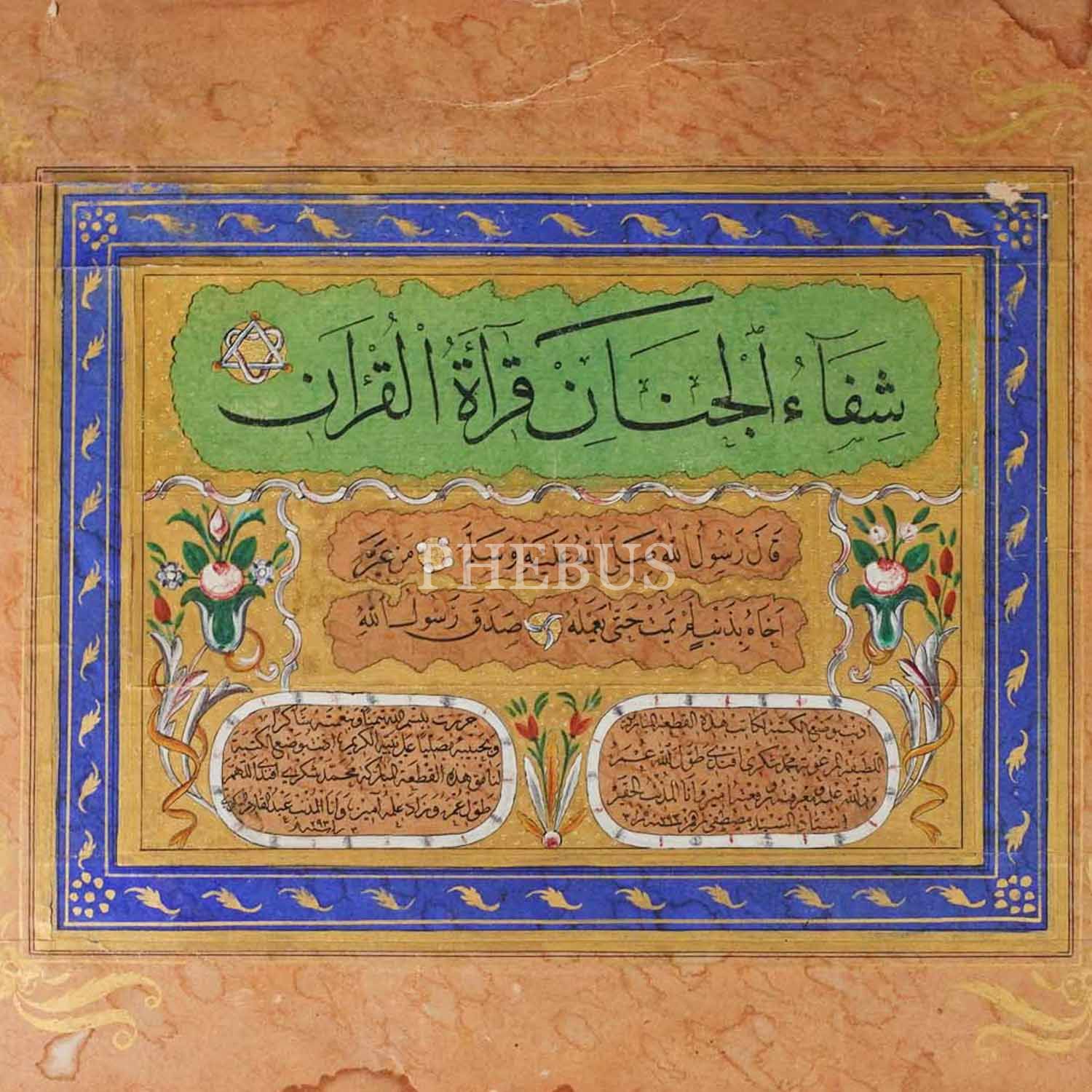 Sülüs kısım: "Gönüllerin şifası Kuran okumaktır" anlamında kibar-ı kelam yazılıdır.