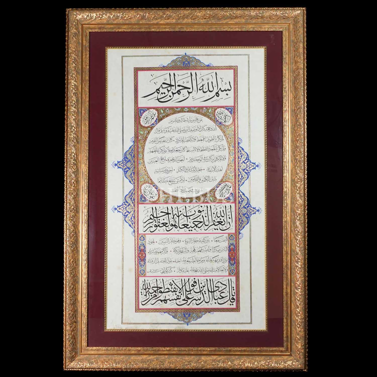 Muhakkak hat ile yazılmış hilye-i şerif...