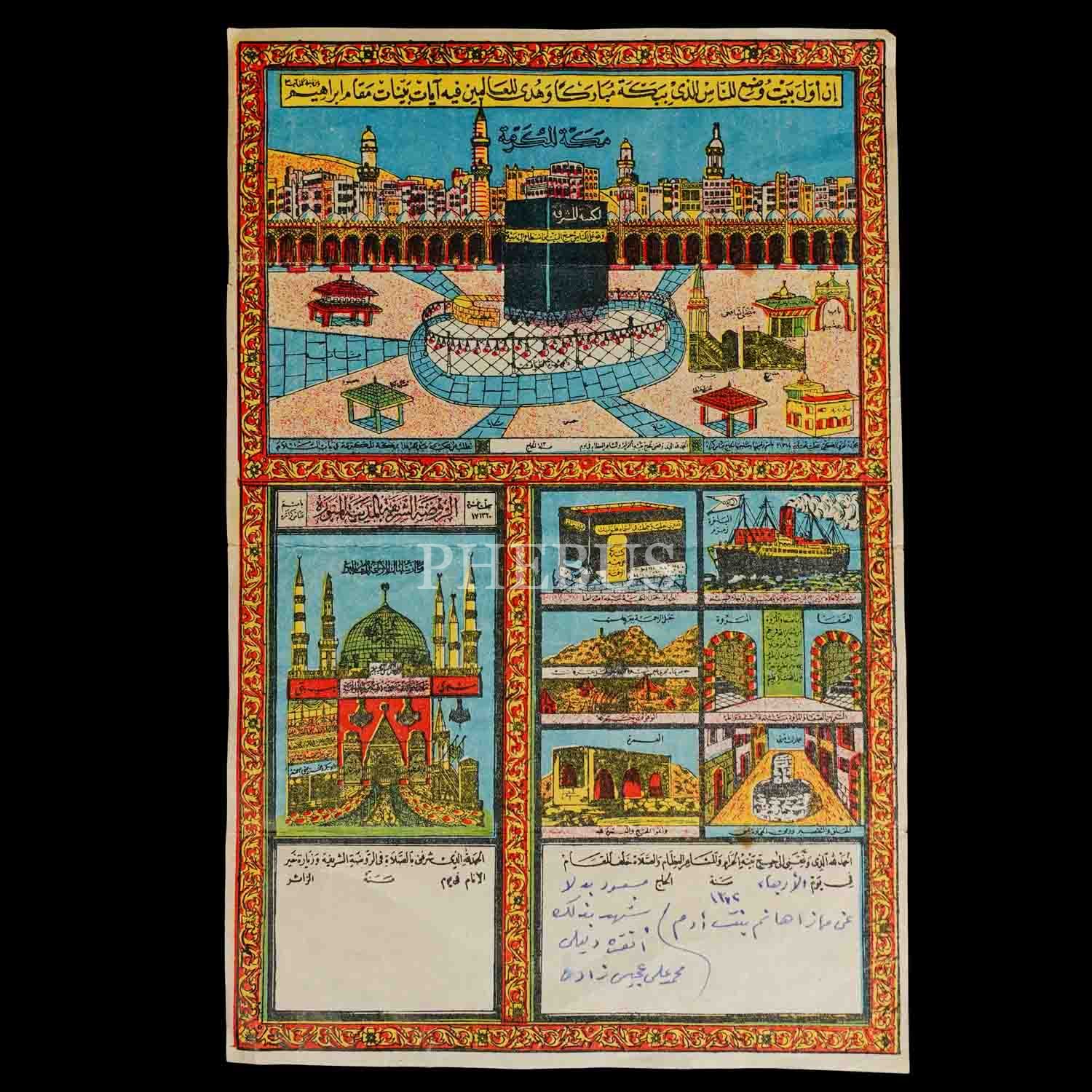 Renkli Kutsal Topraklar temalı hac şehadetnamesi, 31x20 cm...