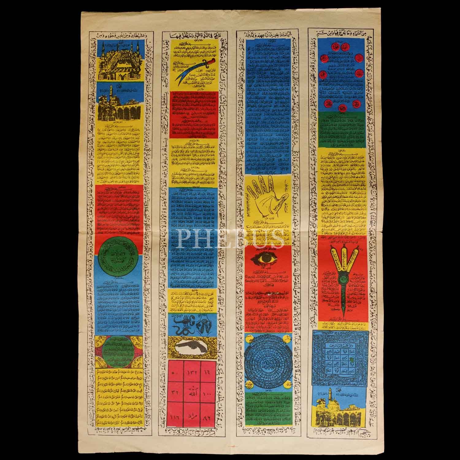 Muhafaza vefkleri, nazara karşı dualar, havaslar, muhtelif ayet ve dualar, Mescid-i Haram ile Mescid-i Nebevi çizimleri vs...