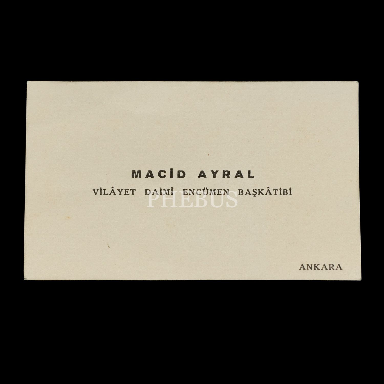 Hattat Macid Ayral´ın memuriyet yaptığı döneme ait bir kartviziti, 9x5 cm...