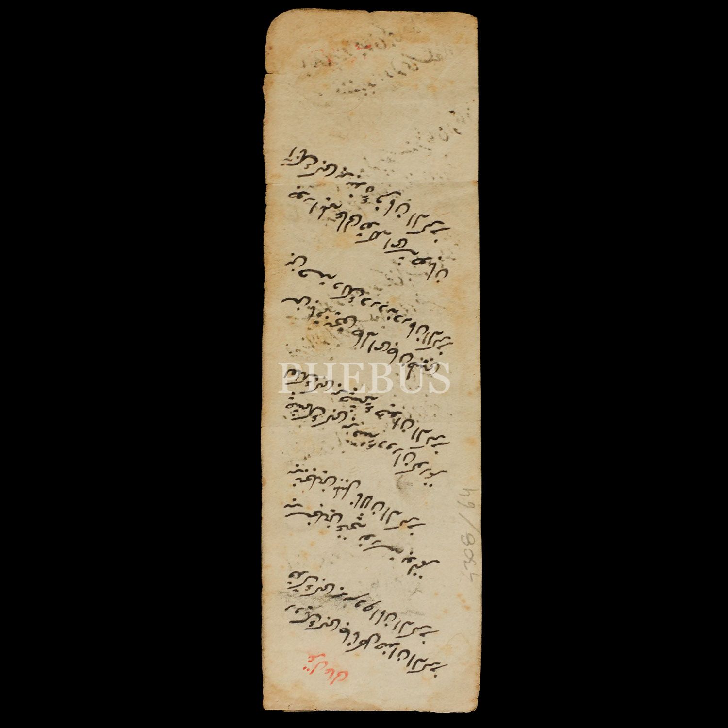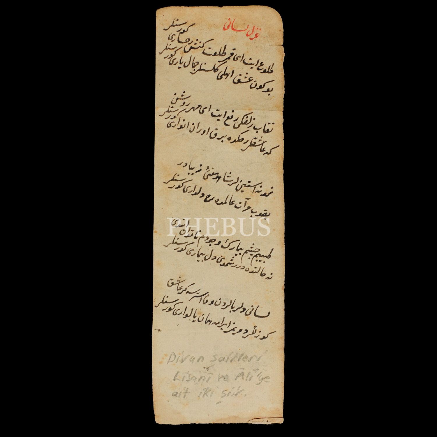 Divan şairleri Lisanî ve Âlî'ye ait iki şiir, arkalı önlü, 18x6 cm...