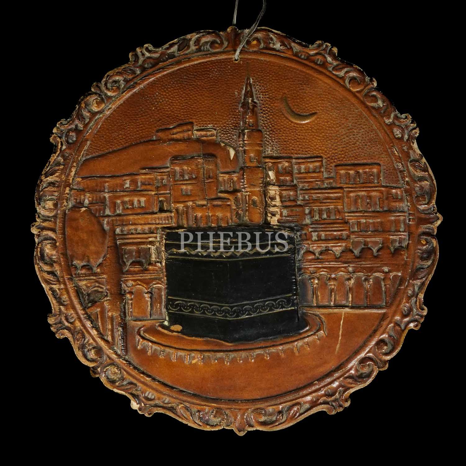 Ahşap üzerine oyma tekniği ile işlenmiş Kabe-i Muazzama tasviri, 32x32 cm...