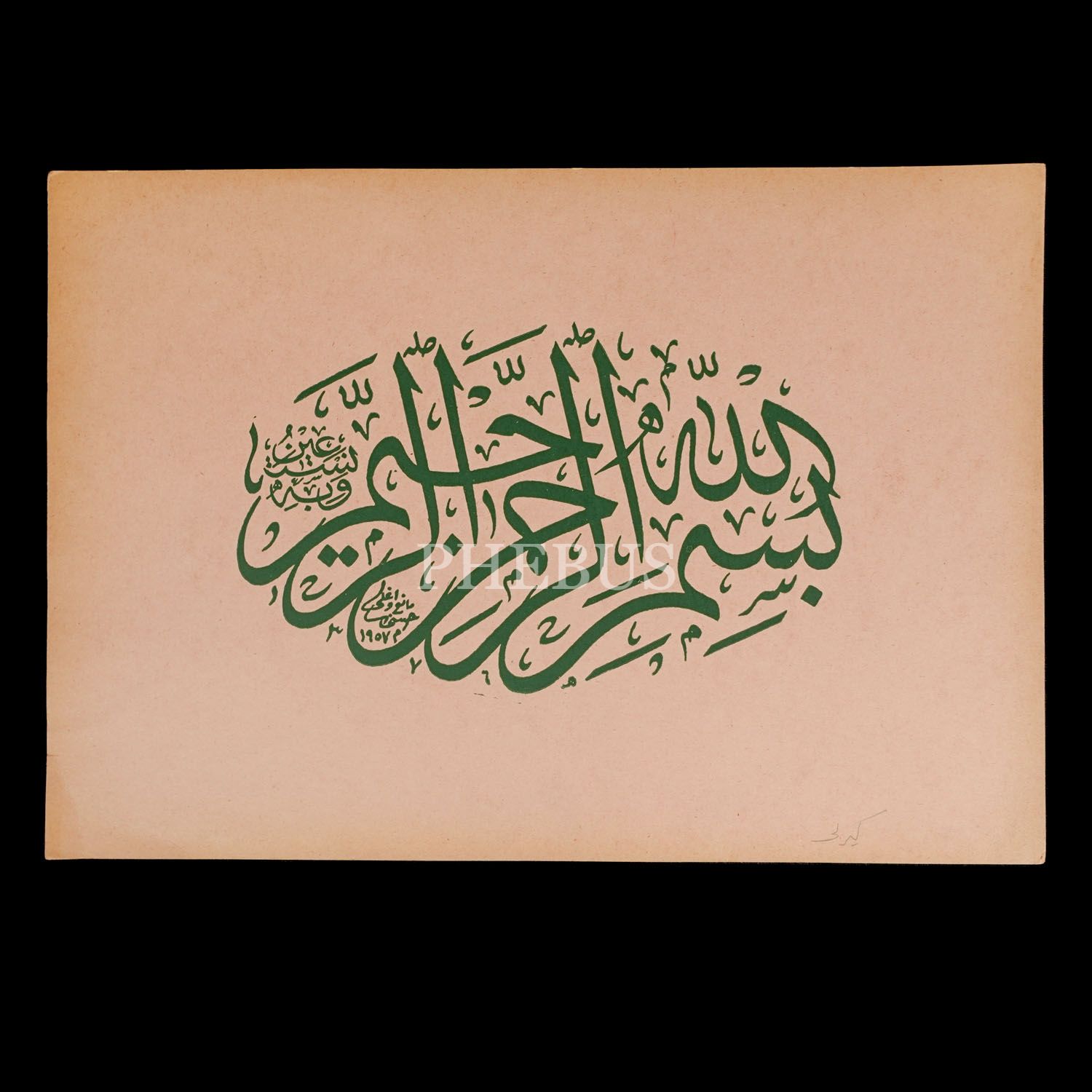 Baskı celi sülüs besmele, Manioğlu Hüsni, 1957, 33x23 cm...