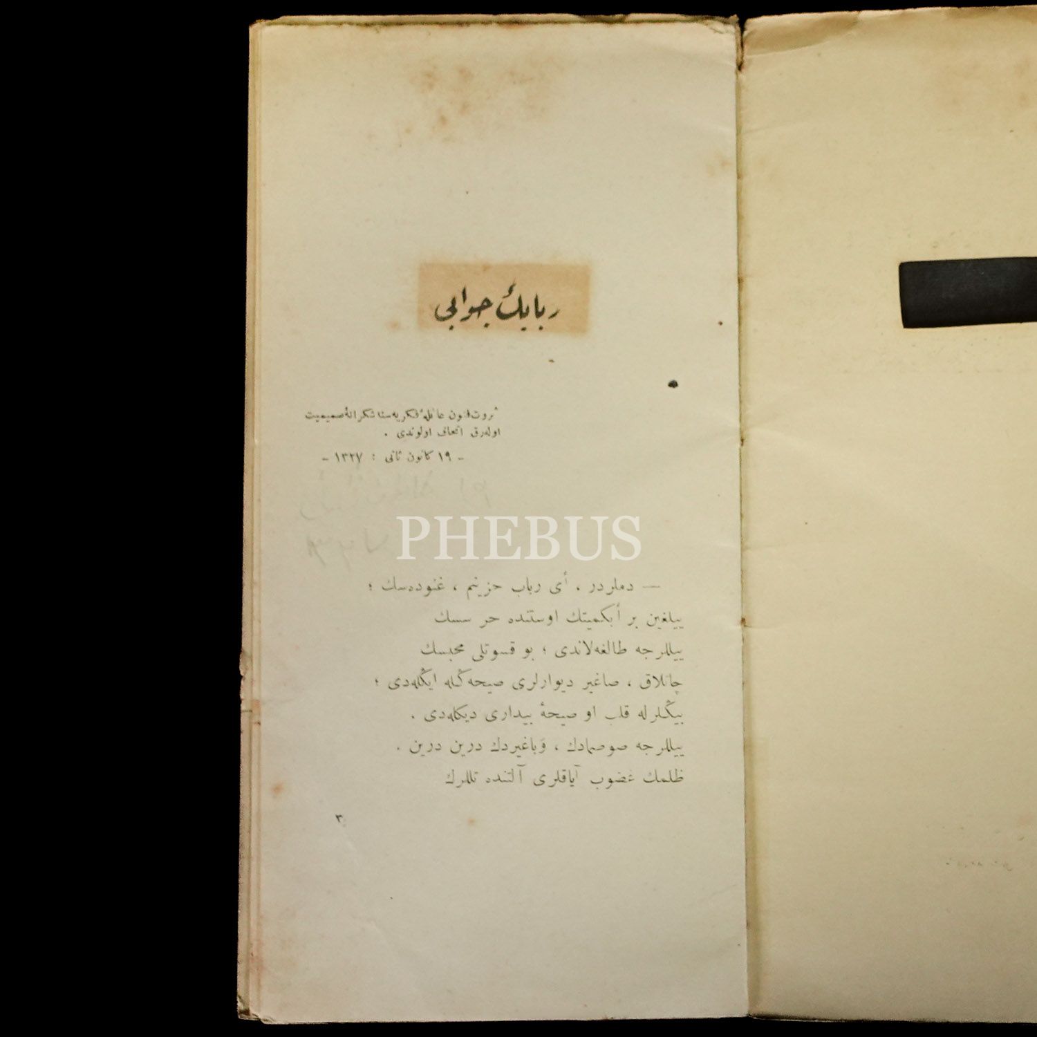 RÜBABIN CEVABI, Tevfik Fikret, 1327, Nâşiri: Hasan Tahsin, 10 sayfa, 11x22 cm…