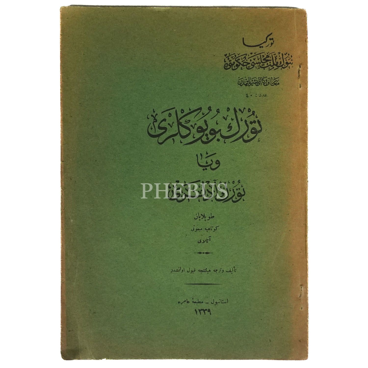TÜRK BÜYÜKLERİ veya TÜRK ADLARI, Toplayan: Kütahya Mebusu Atalay (Besim Atalay), 1339, Matbaa-yı Amire, 114 sayfa, 17x24 cm…