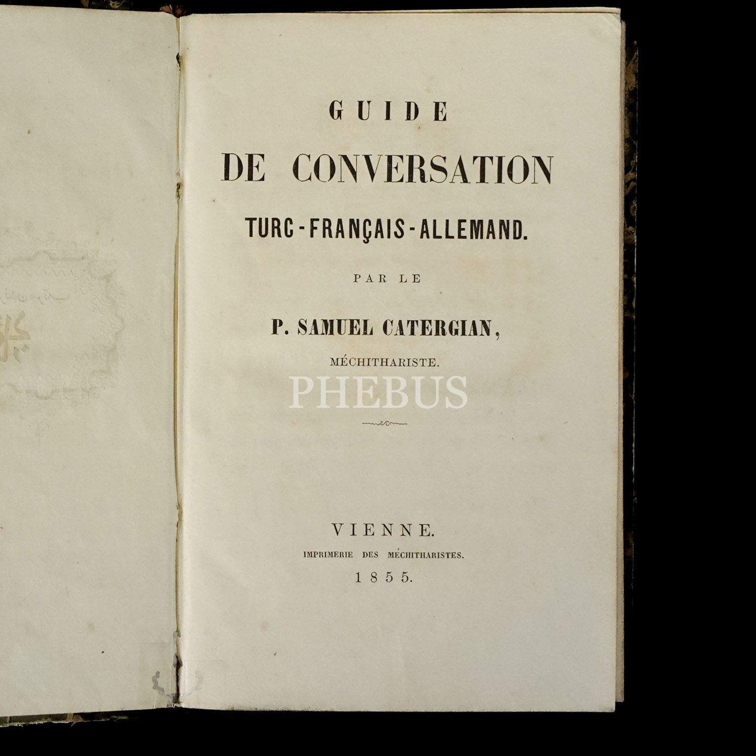 MÜKÂLEME KİTABI - GUIDE DE CONVERSATION TURC - FRANÇAIS - ALLEMAND, Samuel Catergian, 1855, Imprimerie des Mechitharistes - Vienne, 222 sayfa, 11x18 cm…