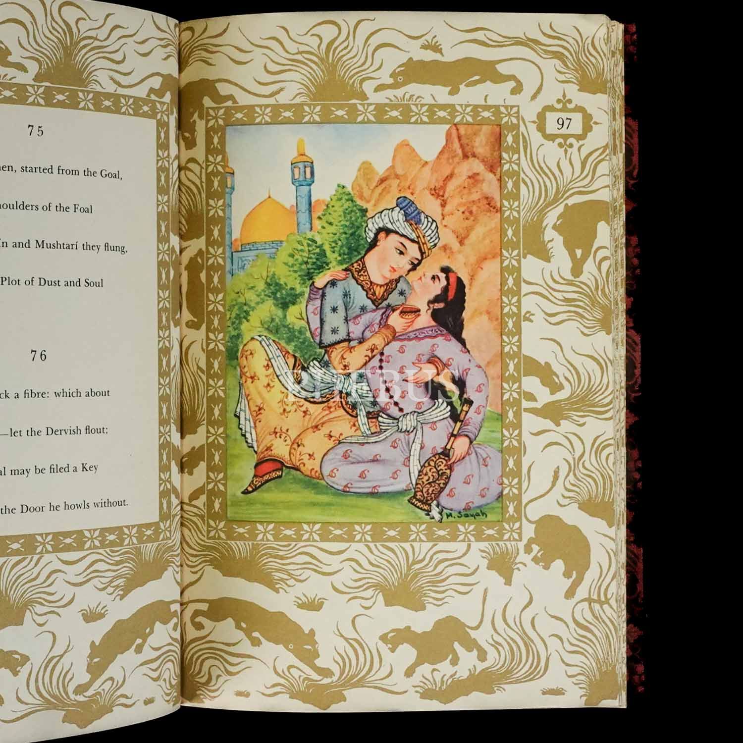 Oryantal desenlerle süslenmiş, İngilizce Hayyam rûbaileri… Orijinal cildi ve kutusu içinde…