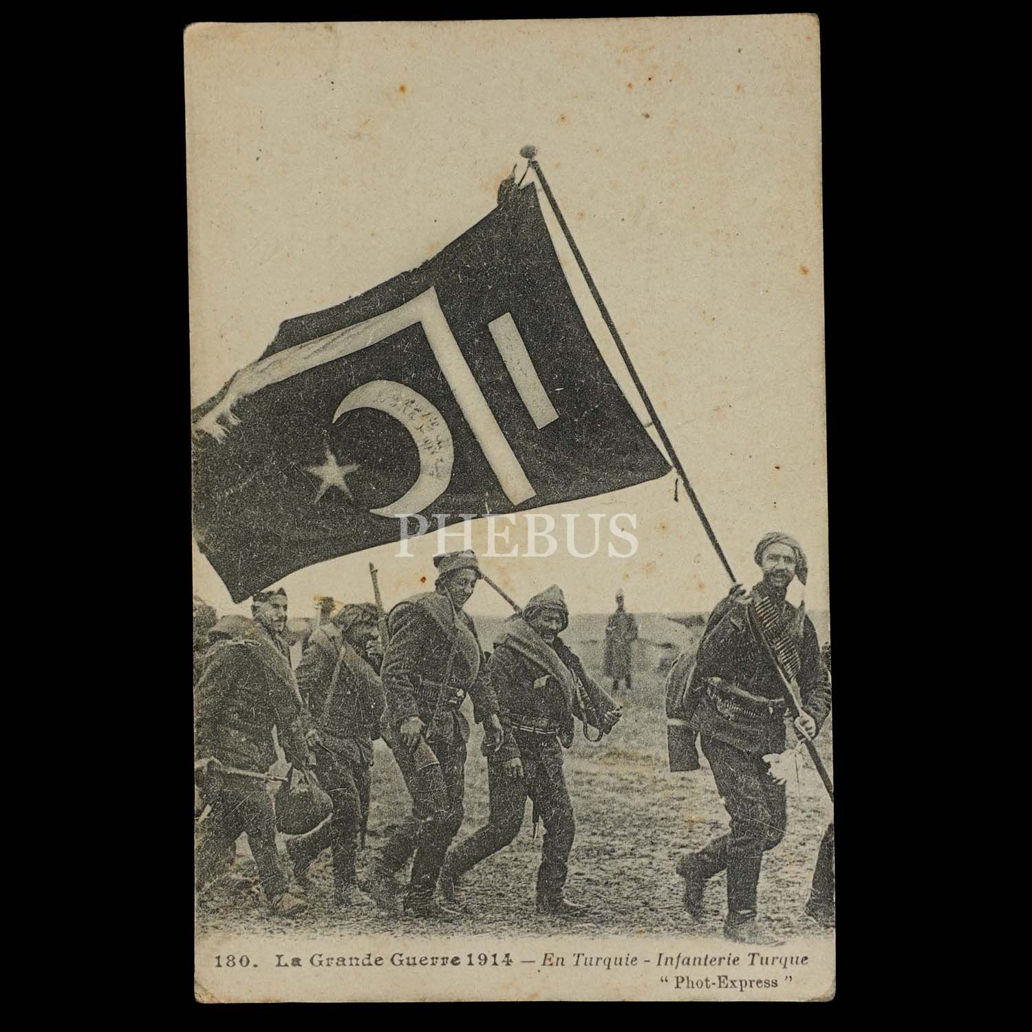 Birinci Dünya Savaşı dönemi Türk piyadeleri, "La Grande Guerre 1914 - En Turquie - Infanterie Turque", ed. Phot-Express...