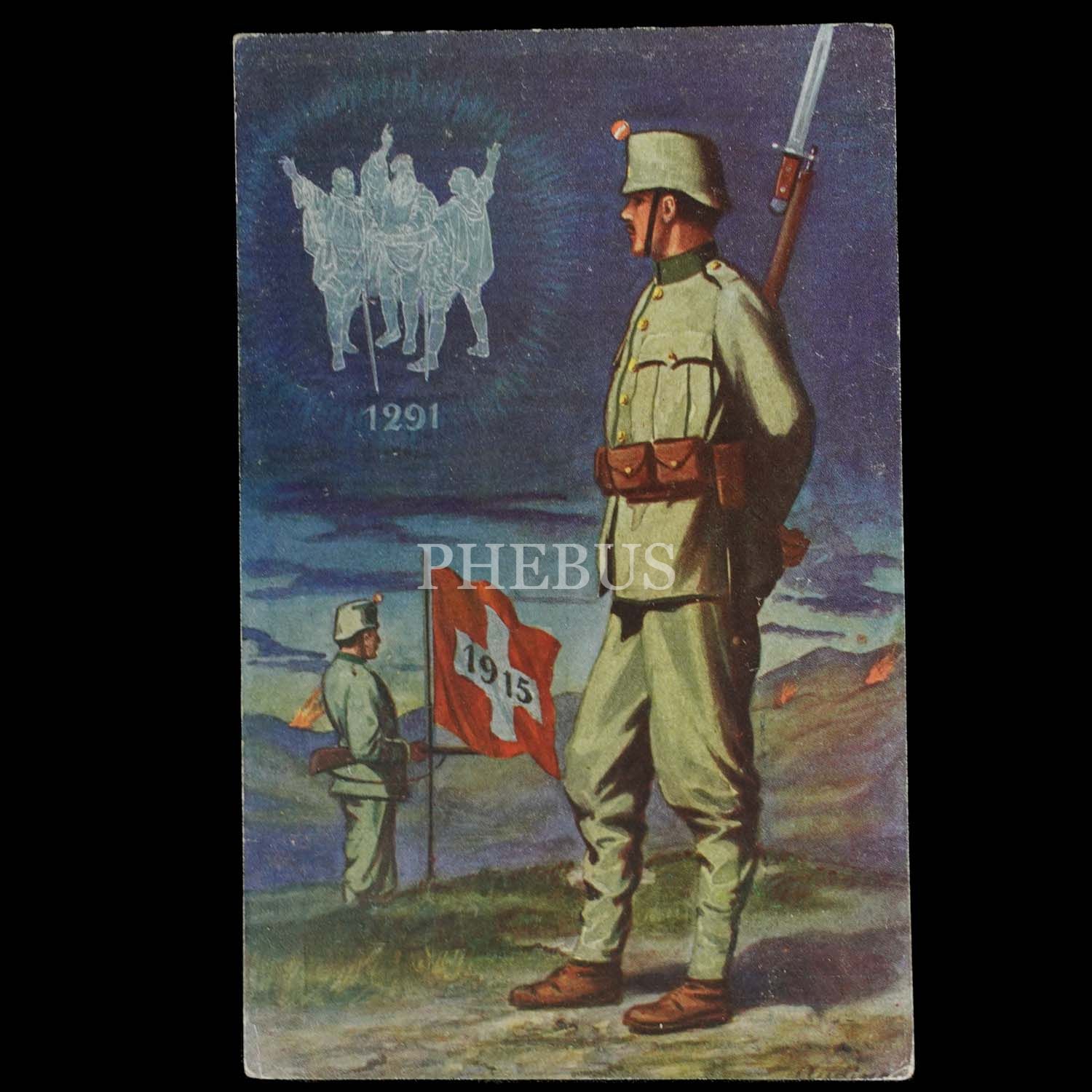 Birinci Dünya Savaşı´nda tarafsızlığını açıklayan İsviçre´den 1915 tarihli bir askeri propaganda kartpostalı, ed. G. Jaeger, Geneve...