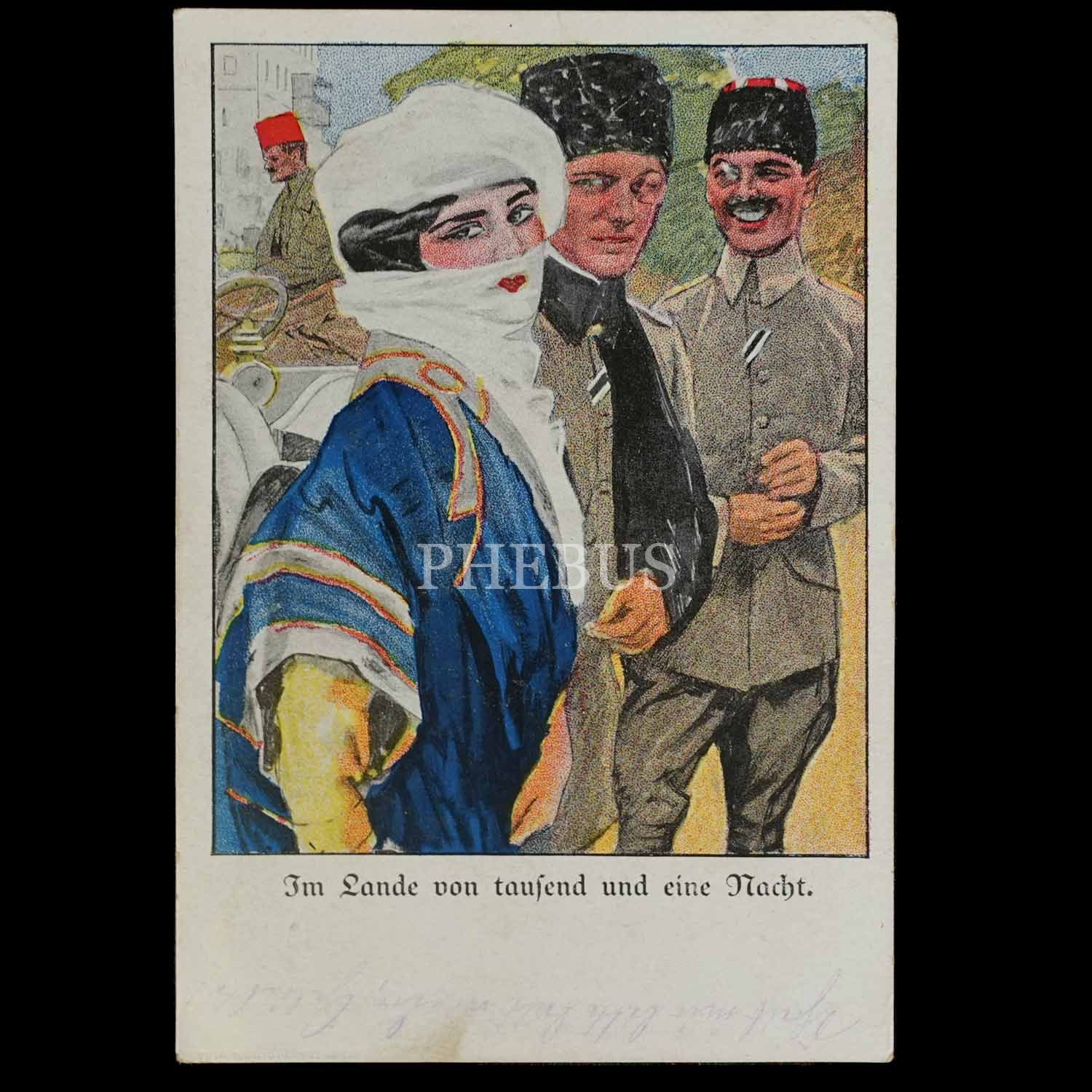 Birinci Dünya Savaşı döneminden Almanya baskı, "Binbir Gecenin ülkesinde" (Im Lande von tausend und eine Nacht) başlıklı kartpostal, ed. Dr. Eysler & Co., Berlin...