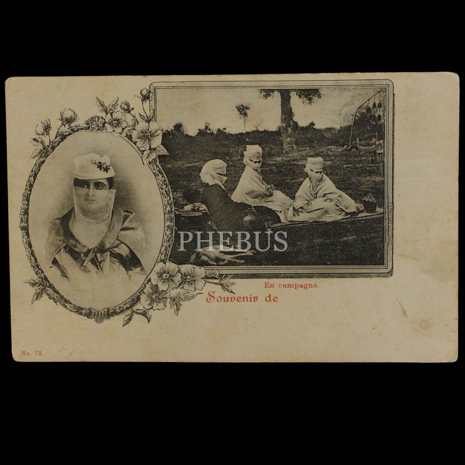 Mesire alanında Türk kadınları ve bir Türk kadını portresi görselli parçalı kartpostal...