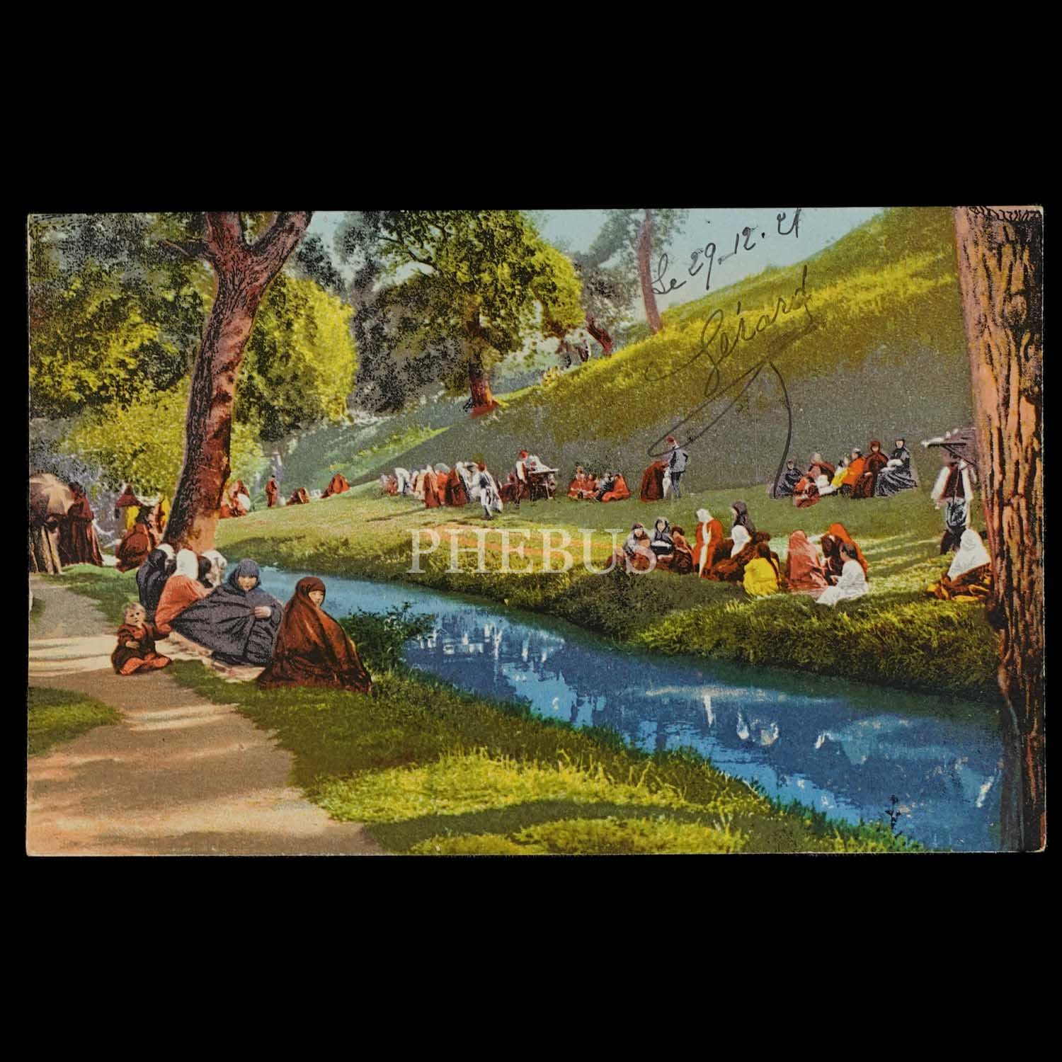 Beykoz çayırında piknik yapan Türk kadınları, "Constantinople, La Prairie de Beicos au Bosphore", ed. E.F. Rochat, Constantinople...