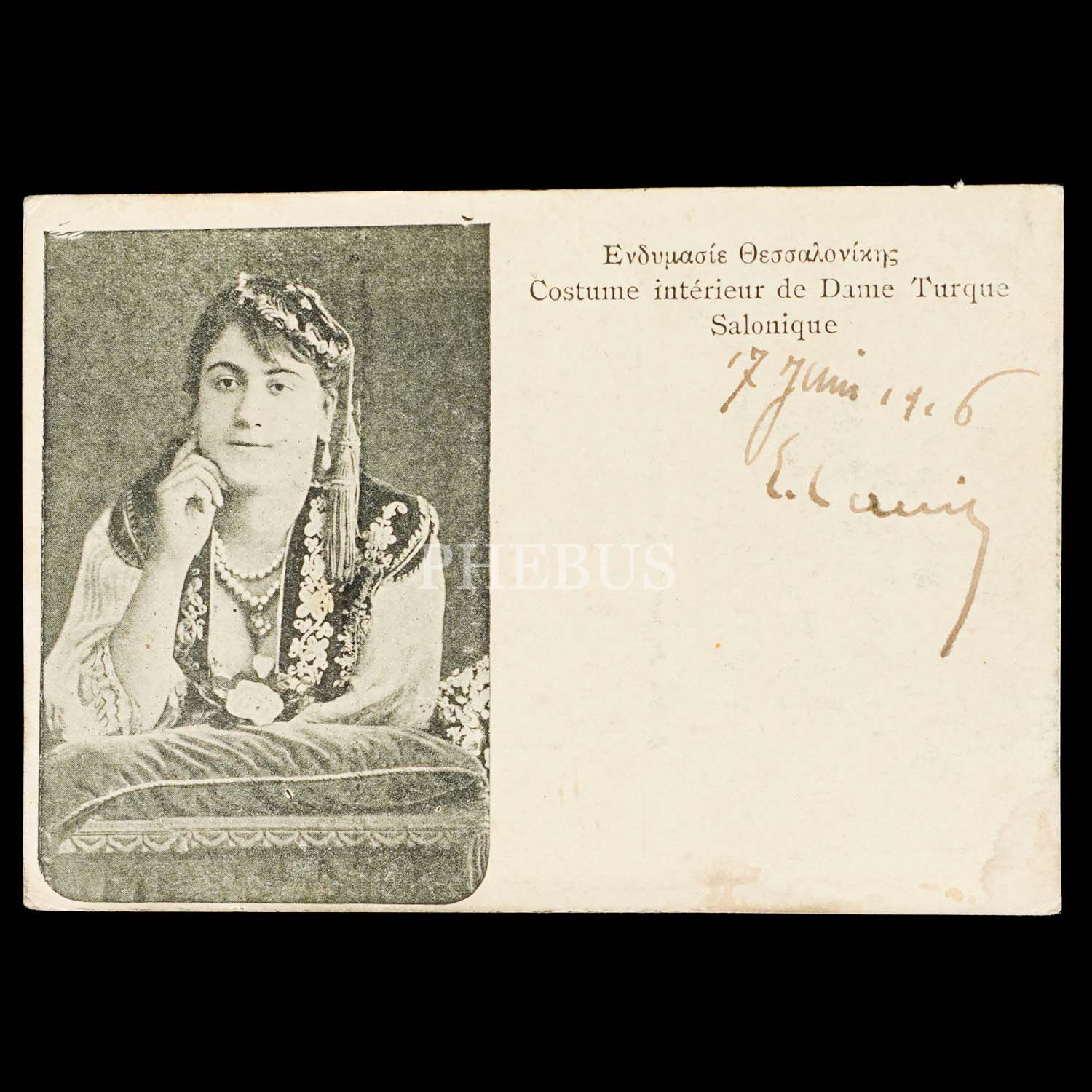 Ev kıyafetiyle Selanikli bir Türk kadını, "Costume interieur de Dame Turque - Salonique", ed. Jacques Saul, Salonique...