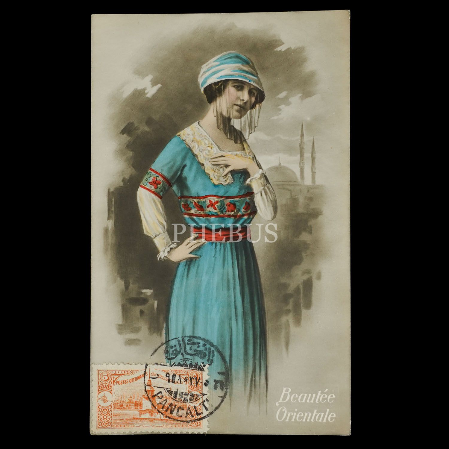 Güzel bir Türk kadını, elle renklendirilmiş, "Beautee Orientale"...