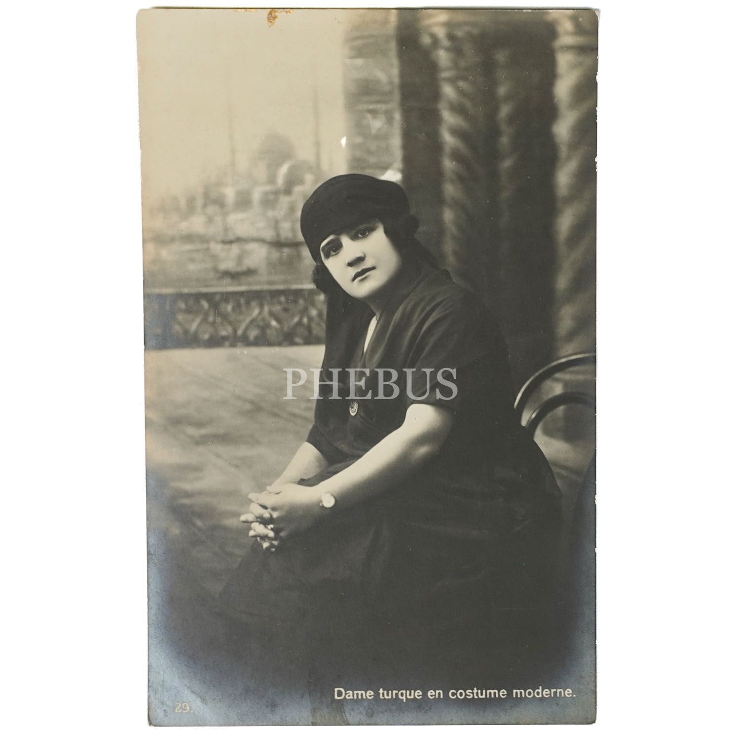 Modern kıyafetli bir Türk kadını, "Dame turque en costume moderne"...