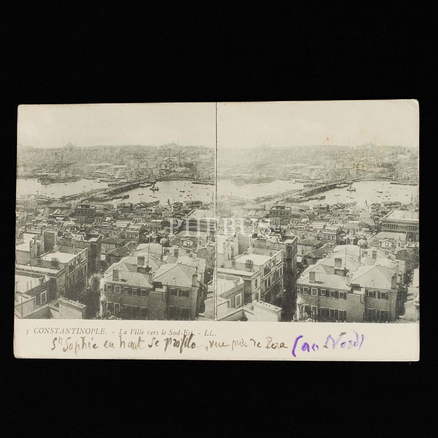 Galata Kulesi´nden Galata Köprüsü´ne bakış, stereoview formatında, "Constantinople - La Ville vers le Sud-Est", ed. L´Imprimerie Nouvelle Photographique, Paris...