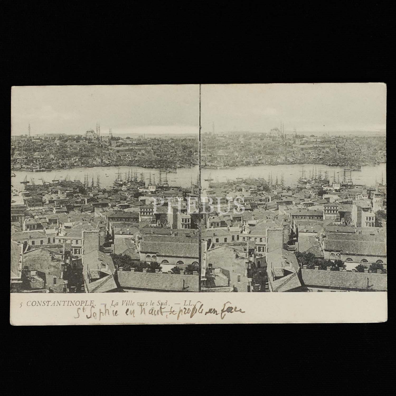Galata Kulesi´nden Haliç´e bakış, stereoview formatında, "Constantinople - La Ville vers le Sud - LL.", ed. L´Imprimerie Nouvelle Photographique, Paris...