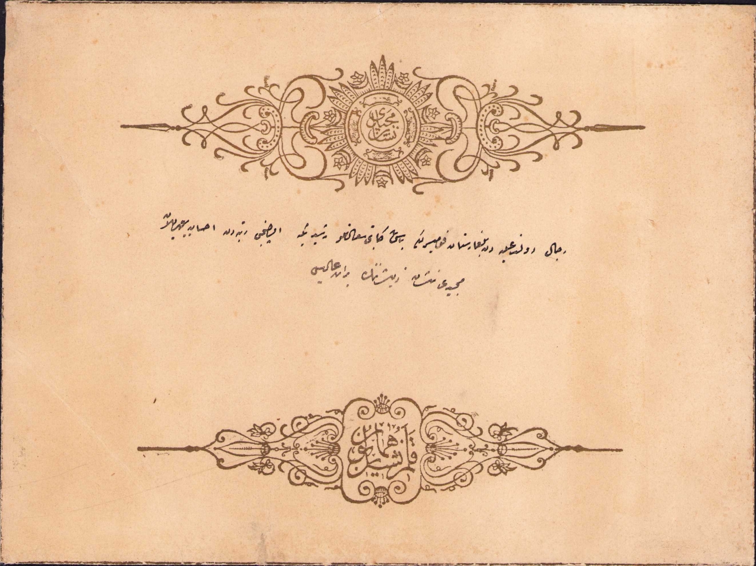 Osmanlıca Ricali Devlet-i Aliyyeden Bulgaristan Komiserliği baş komiseri saadetli Reşit Bey'e 3. rütbeden ihsan buyrulan mecidi nişanı ve zişanının beraatıne dair zarf, 22x16 cm