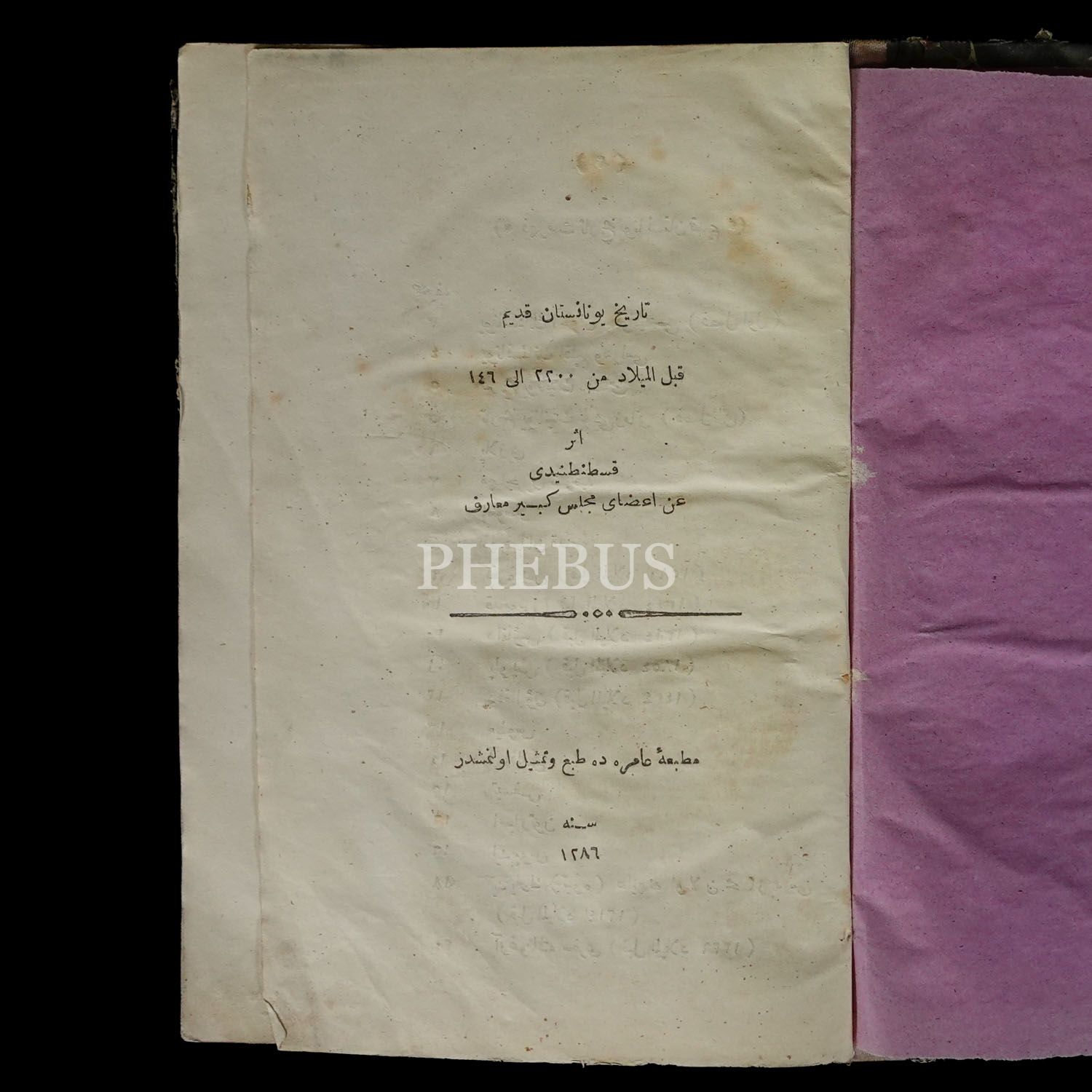 TARİH-İ YUNANİSTAN-I KADÎM, "Kable´l-mîlad 2200 ilâ 146", Meclis-i Maarif´ten Kostantinîdî, 1286, Matbaa-i Amire, 340 sayfa, 22x14 cm...