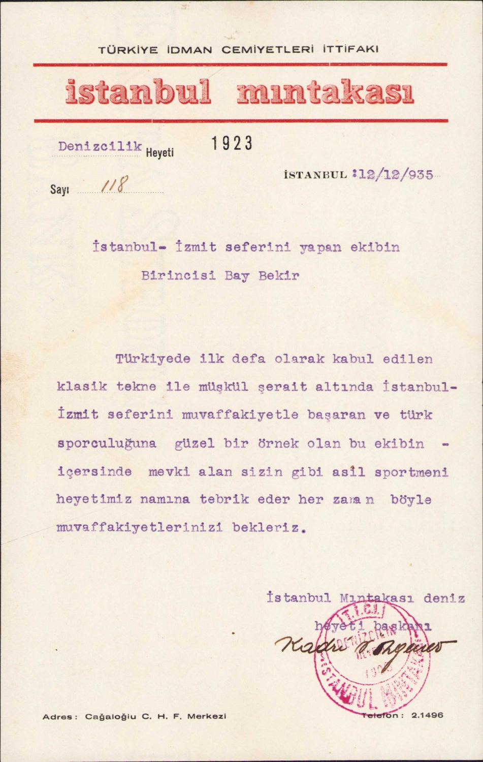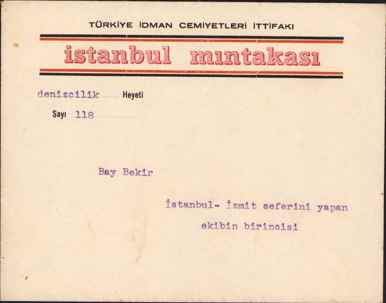 Türkiye İdman Cemiyetleri İttifakı İstanbul Mıntıkası antetli zarf