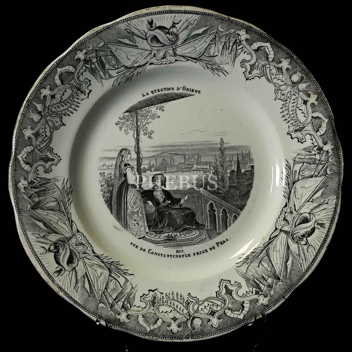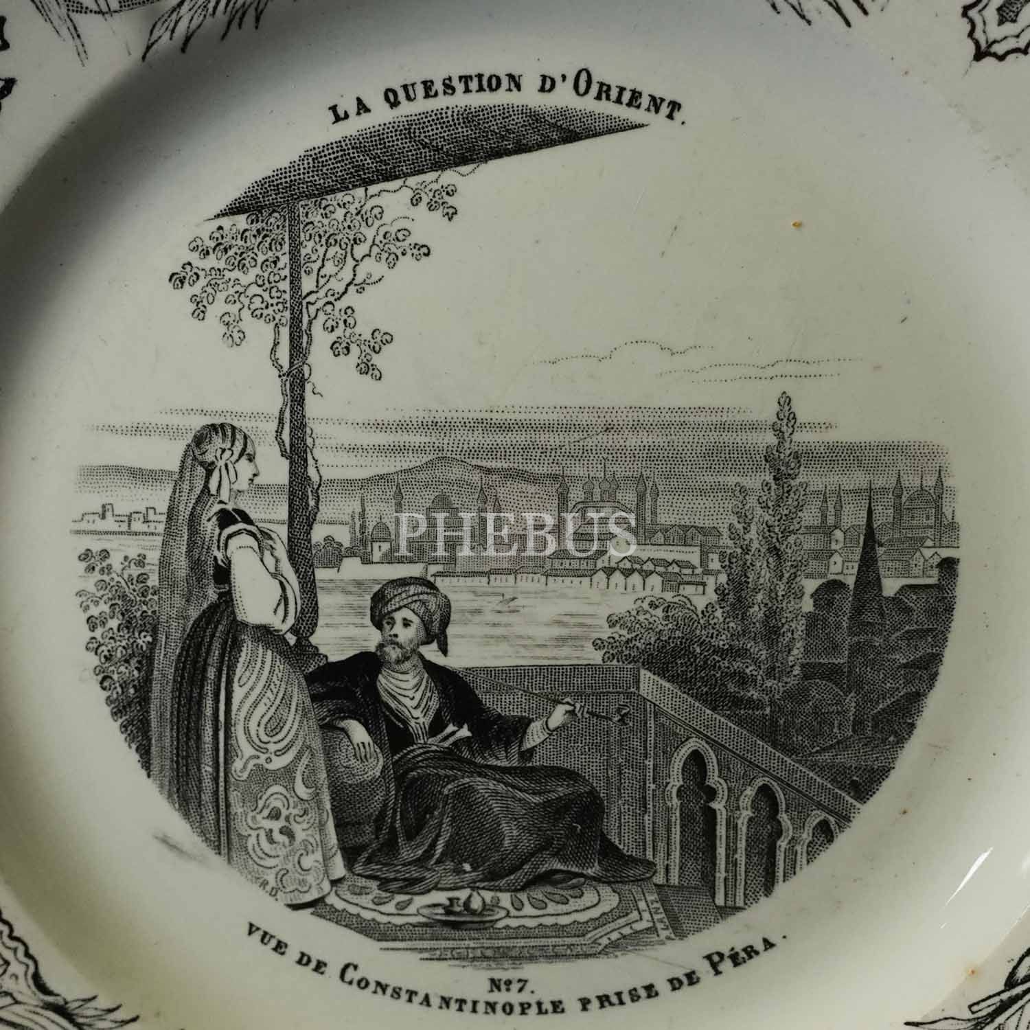 Hayali bir İstanbul - Pera manzarası görselli porselen tabak, "La Question d´Orient - Vue de Constantinople Prise de Pera", "L.M. & Cie." damgalı (No. 7), çap 21 cm...