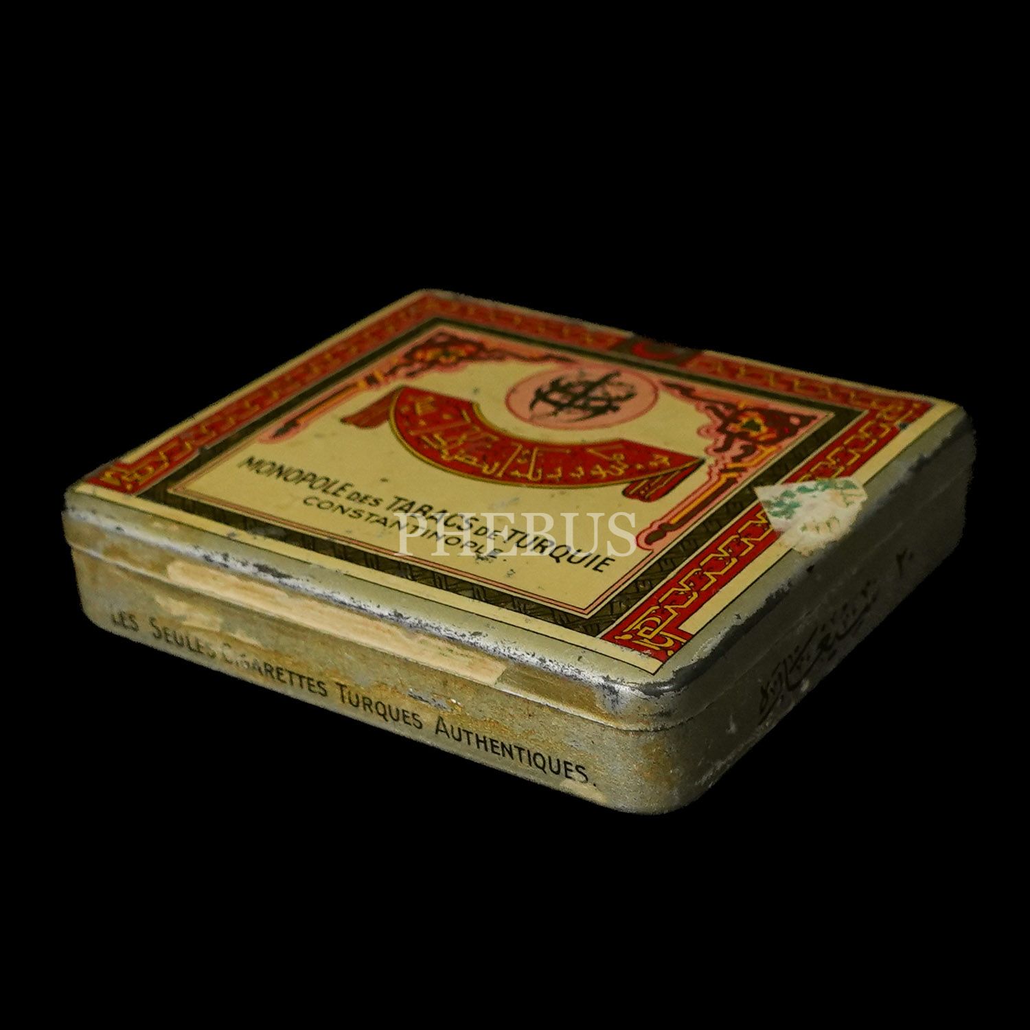 Osmanlıca-Fransızca başlıklı Türkiye İnhisarlar İdaresi sigara kutusu, "Monopole des Tabacs de Turquie - Constantinople", 9x7,5x1,5 cm...