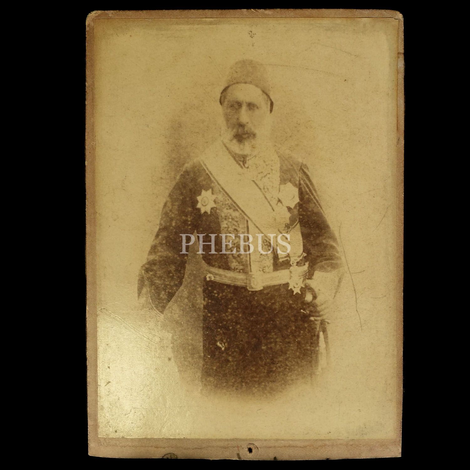 Galip Kemali Söylemezoğlu'nun babası, Konya Valisi Ali Kemali Paşa'nın resmi üniformasıyla aldırdığı kabin fotoğraf, 11x16 cm...