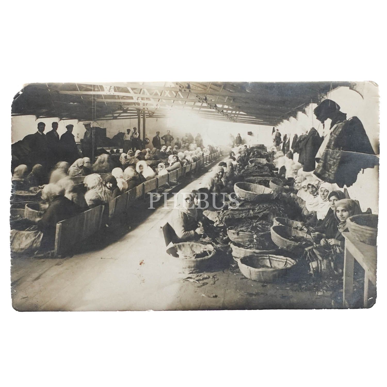 Erken Cumhuriyet döneminde, bir imalethanede çalışan kadınların hatıra fotoğrafı, 14x9 cm...