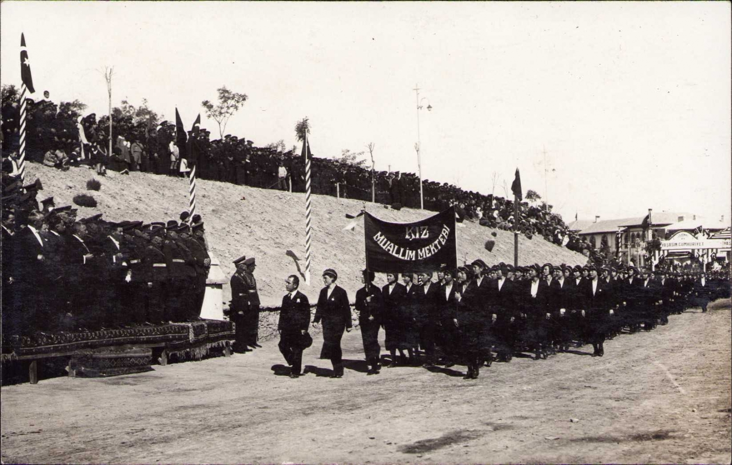 Kız Muallim Mektebi pankartlı 29 Ekim kutlaması