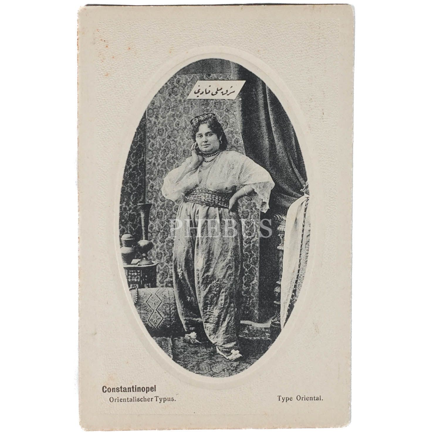 Doğulu güzel, "Constantinople - Type Oriental", gofre çerçeveli, ed. M.J. AF., 9x14 cm...