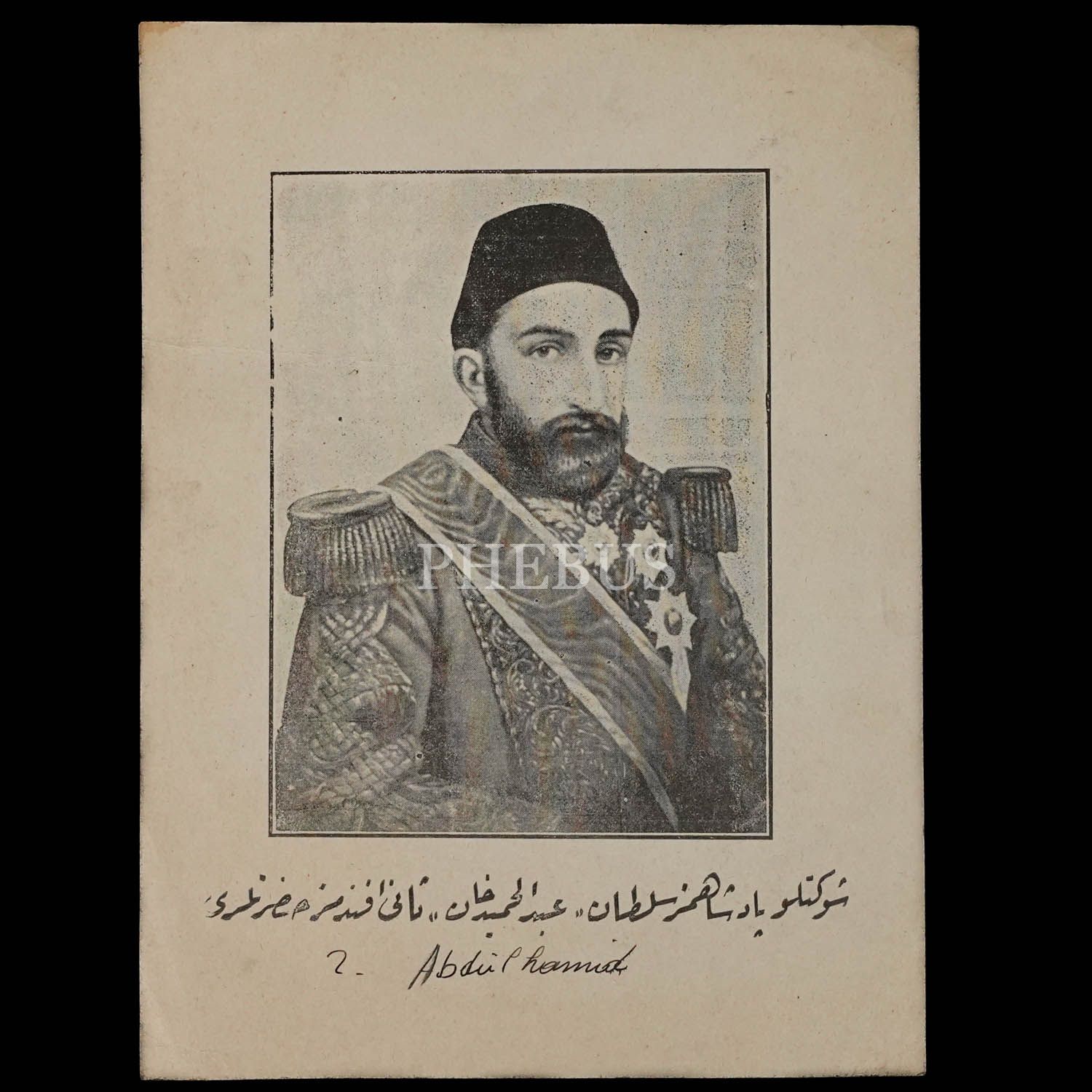 "Şevketli Padişahımız Sultan Abdülhamid Han Sani Efendimiz Hazretleri" altbaşlıklı afiş, 16x21 cm...